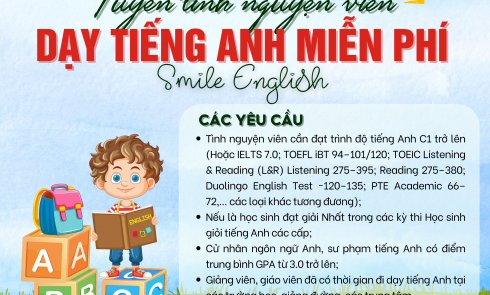 Dự án sắp thực hiệnDự án Lớp học miễn phí Smile Class (Lớp học Nụ cười) là một dự án giáo dục cộng đồng phi lợi nhuận do Công ty TNHH Doanh nghiệp xã hội từ thiện và hỗ trợ phát triển cộng đồng Fly To Sky và Nhóm từ thiện Fly To Sky triển khai từ năm 2021. Với giai đoạn 1, 2 tập trung dạy tiếng Anh miễn phí vì cộng đồng. Giai đoạn 03 của Dự án mong muốn mang đến cơ hội học tập công bằng, chất lượng và nhân văn cho những người yếu thế trong xã hội – từ trẻ em nghèo, học sinh khó khăn đến thanh niên, người lao động có hoàn cảnh đặc biệt, ít cơ hội tiếp cận giáo dục kỹ năng.