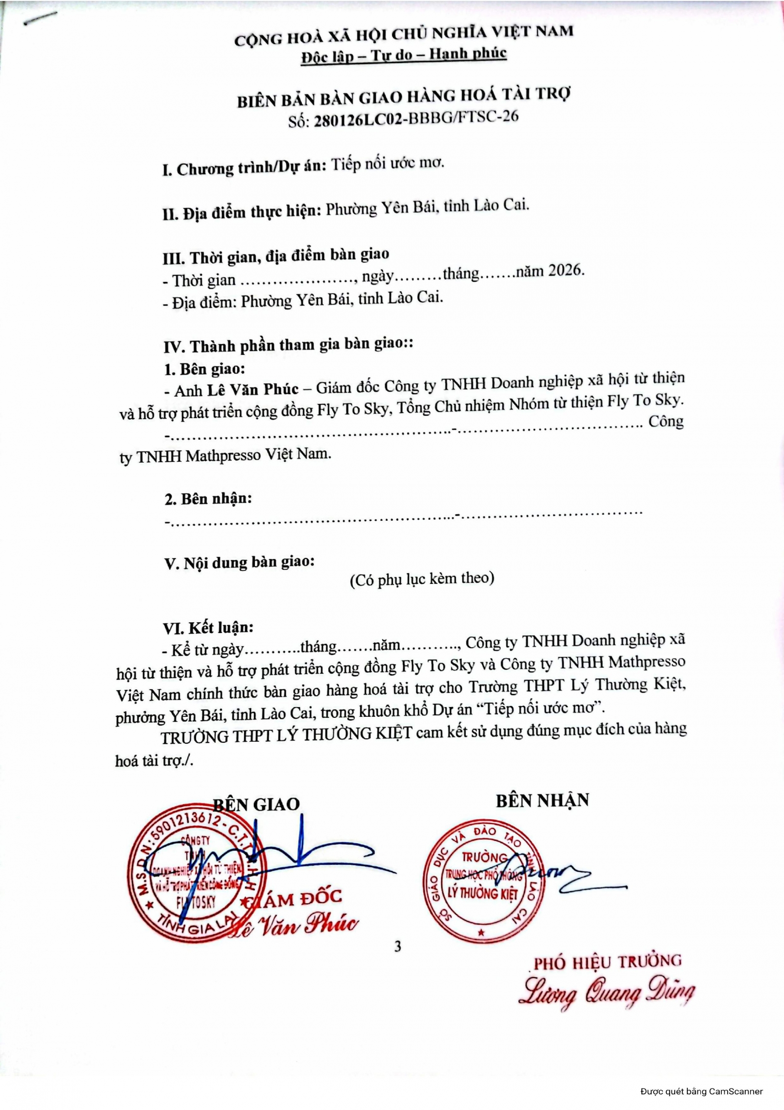 - Các đơn vị, cá nhân mong muốn đồng hành, hợp tác, tài trợ hoặc tư vấn thực hiện các Dự án CSR, ESG theo yêu cầu xin liên hệ số điện thoại 0375.136.800 hoặc 0935.939.446 hoặc email lienhe@flytoskycharity.vn – donghanh@flytoskycharity.vn