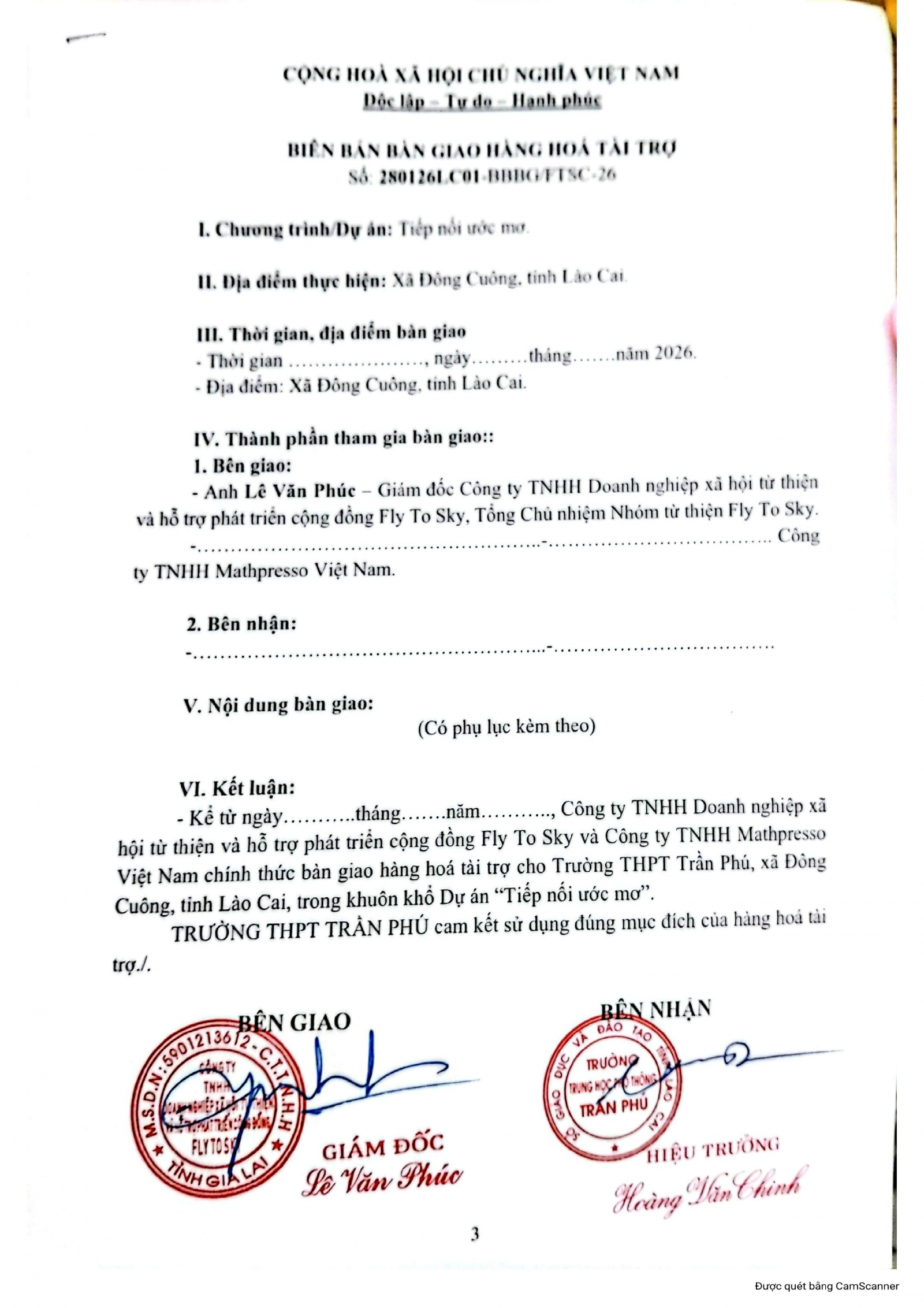- Các đơn vị, cá nhân mong muốn đồng hành, hợp tác, tài trợ hoặc tư vấn thực hiện các Dự án CSR, ESG theo yêu cầu xin liên hệ số điện thoại 0375.136.800 hoặc 0935.939.446 hoặc email lienhe@flytoskycharity.vn – donghanh@flytoskycharity.vn