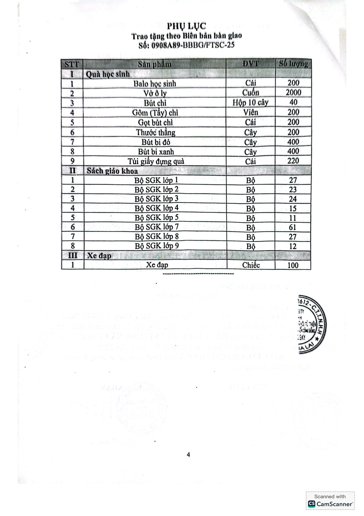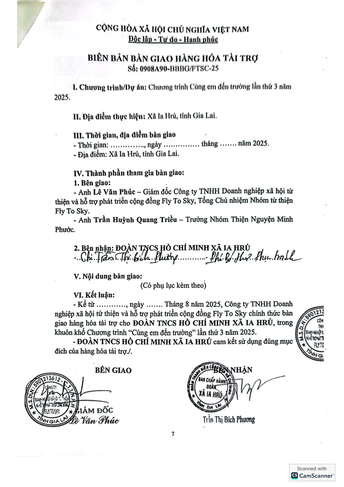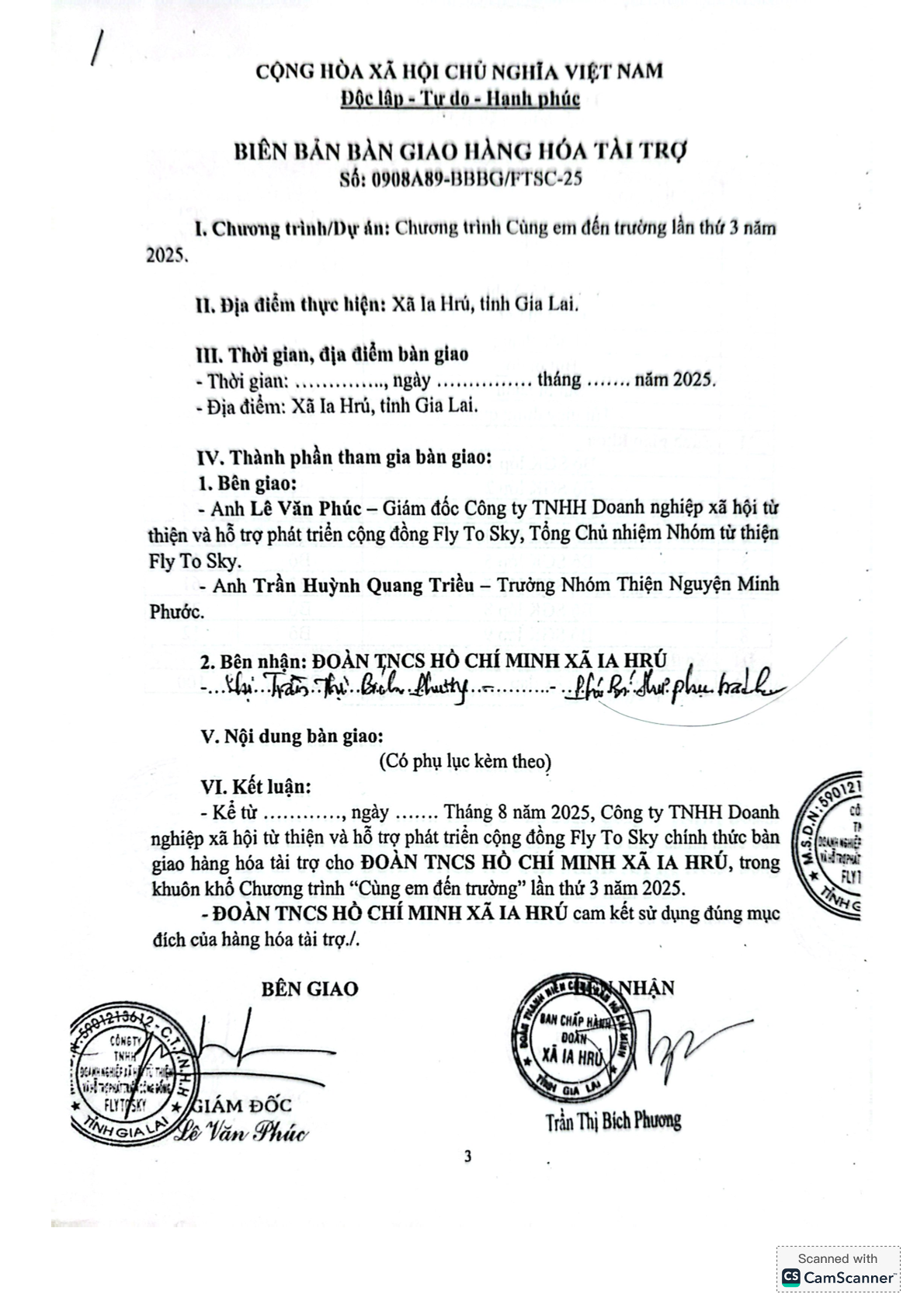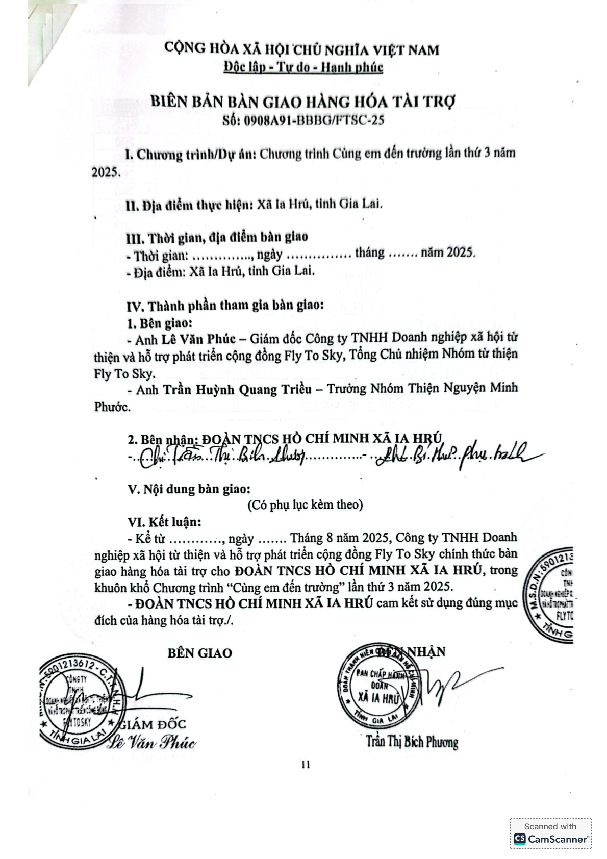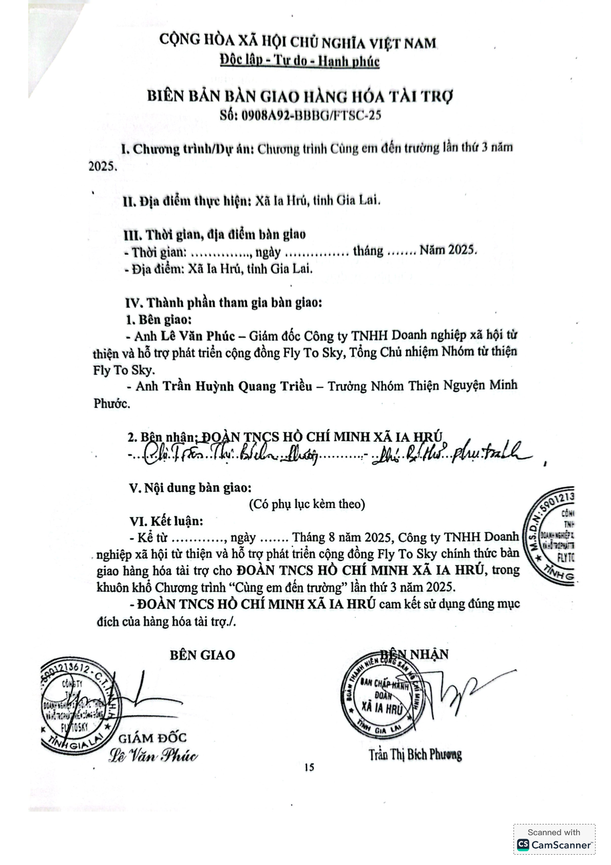 Biên bản bàn giao hàng hóa tài trợ và Báo cáo kết quả rà soát, tổng hợp danh sách Chương trình CÙNG EM TỚI TRƯỜNG lần III, năm 2025