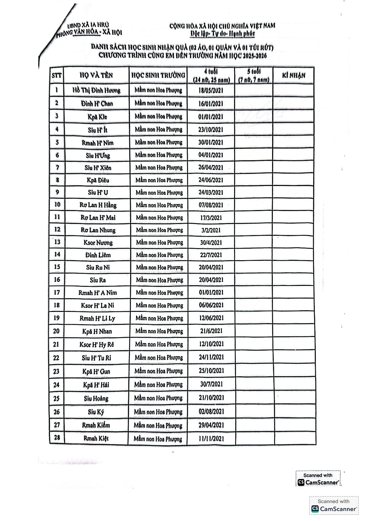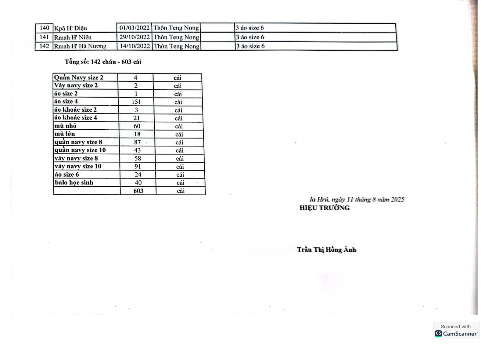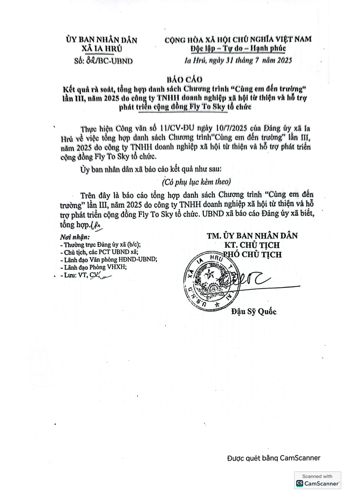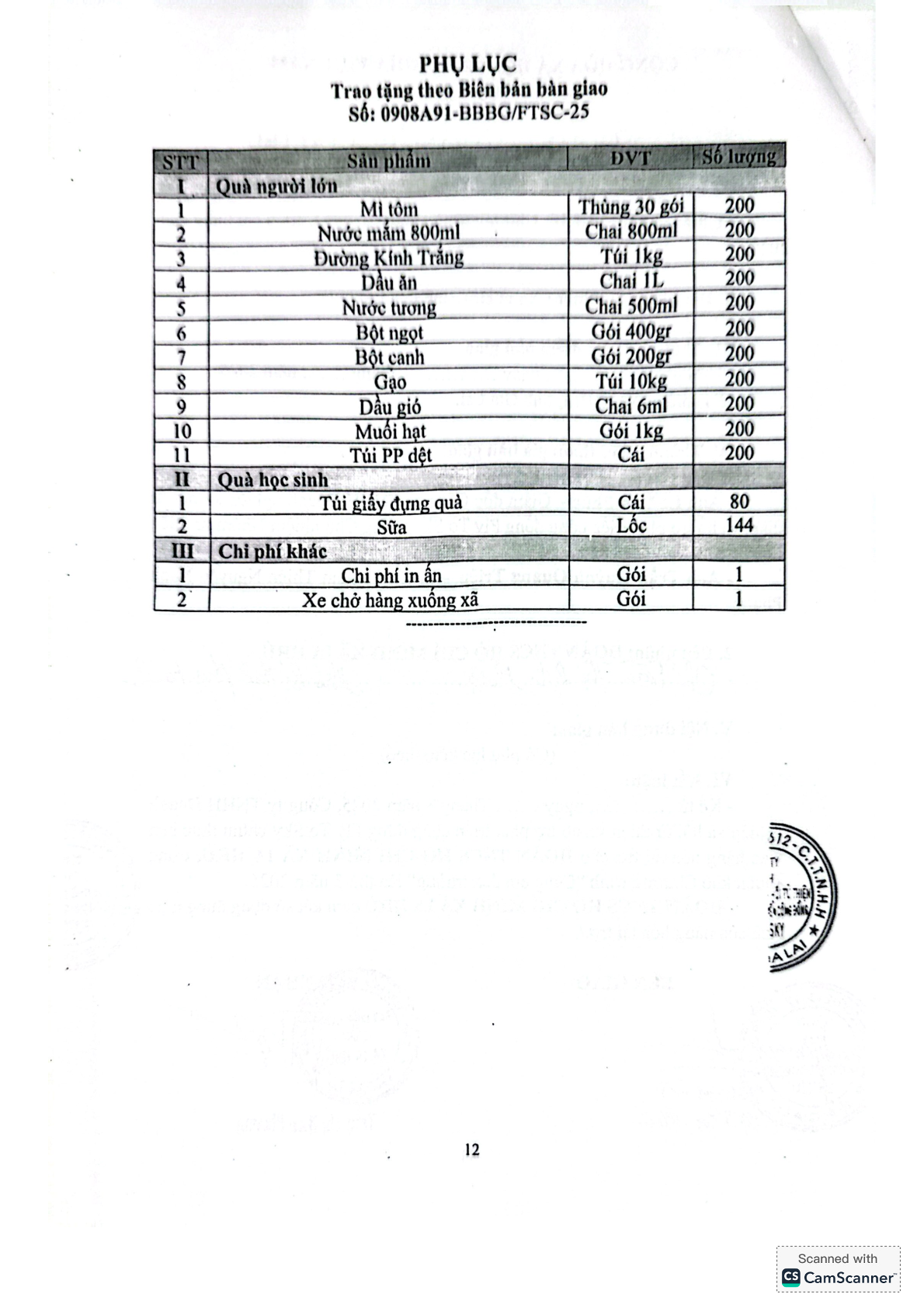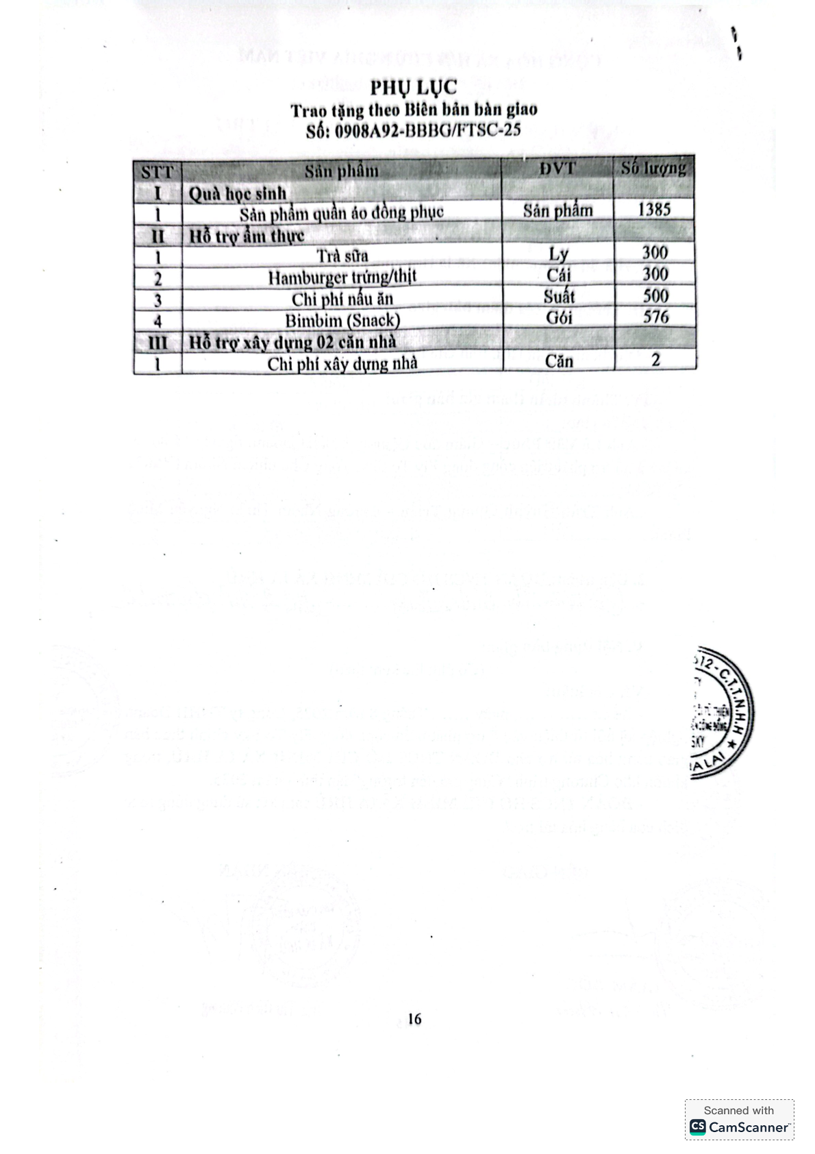 Biên bản bàn giao hàng hóa tài trợ và Báo cáo kết quả rà soát, tổng hợp danh sách Chương trình CÙNG EM TỚI TRƯỜNG lần III, năm 2025