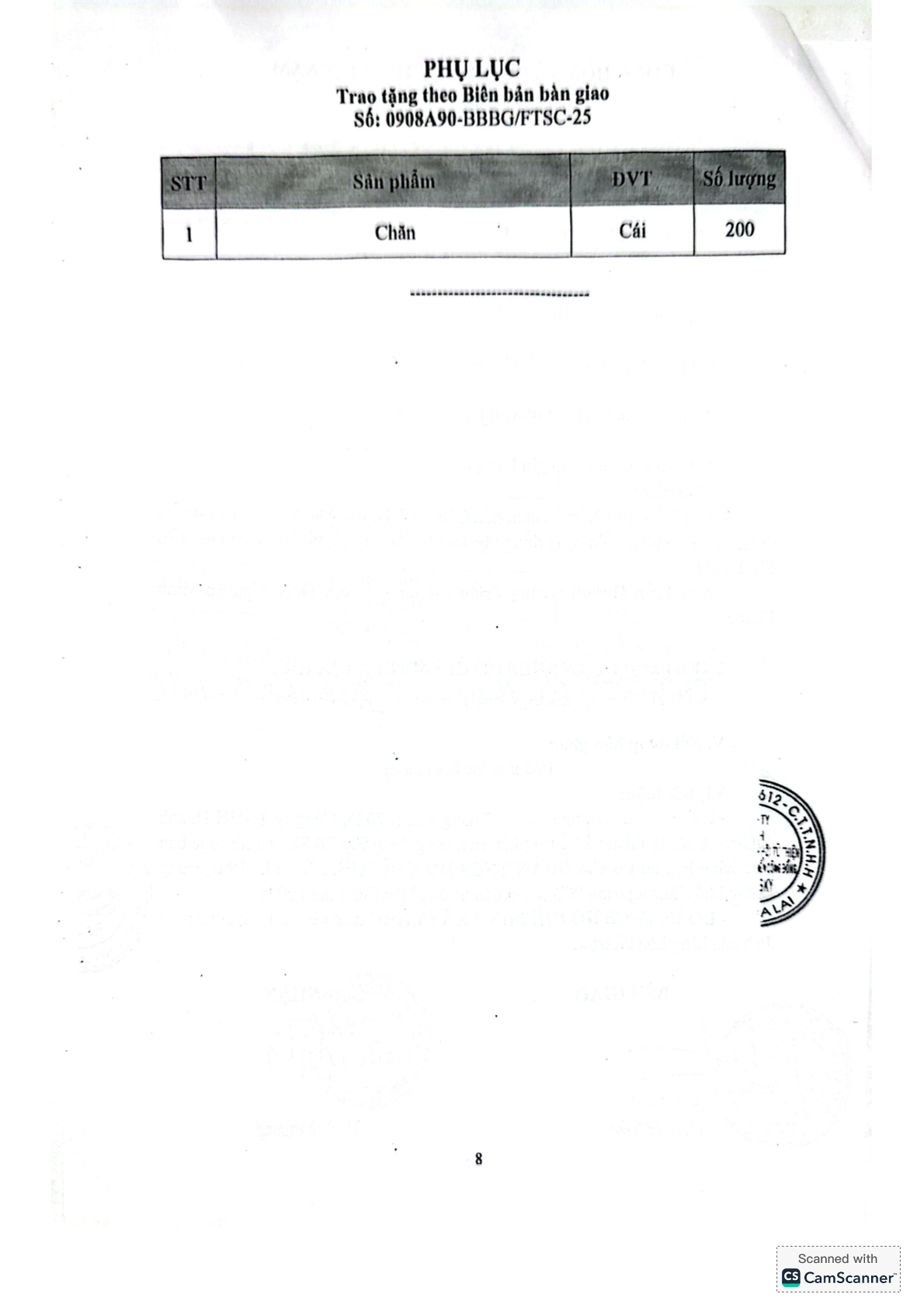 Biên bản bàn giao hàng hóa tài trợ cho Cơ sở bảo trợ và nuôi dưỡng trẻ mồ côi Long Hoa, số 1250/41 Huỳnh Tấn Phát, phường Tân Mỹ, TP. Hồ Chí Minh