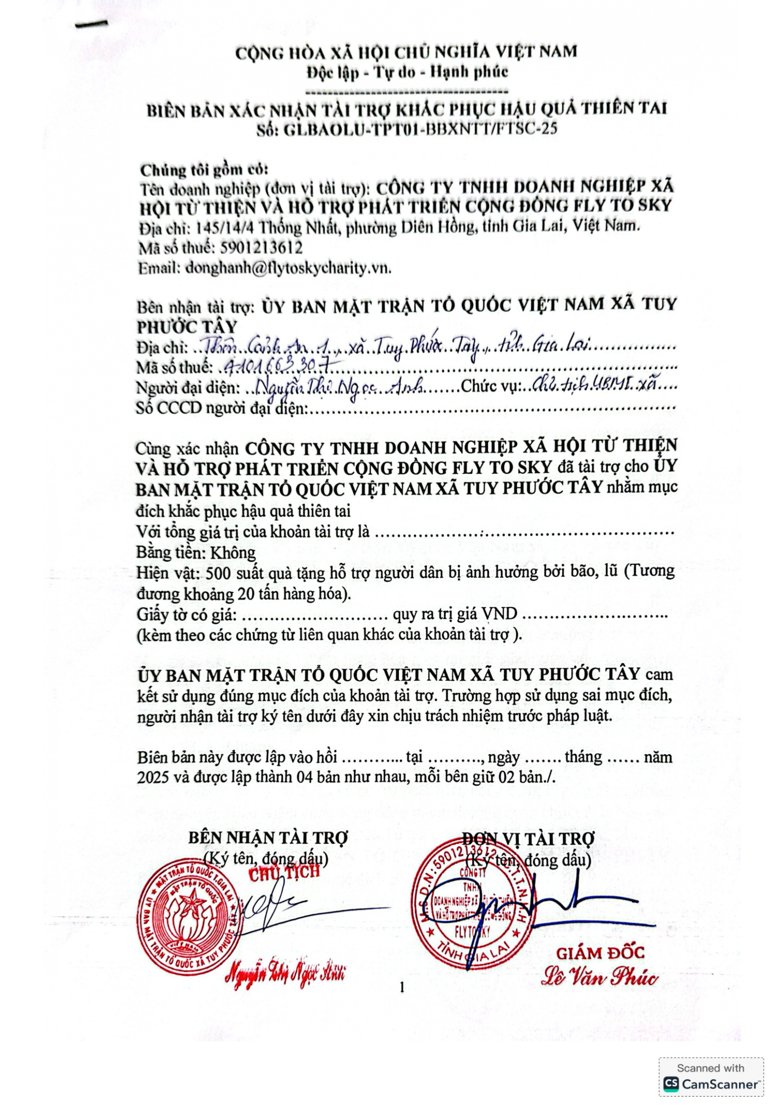 Biên bản xác nhận tài trợ và Biên bản bàn giao tài trợ cho 3 xã Tuy Phước Bắc, Tuy Phước Tây và Tuy Phước, tỉnh Gia Lai