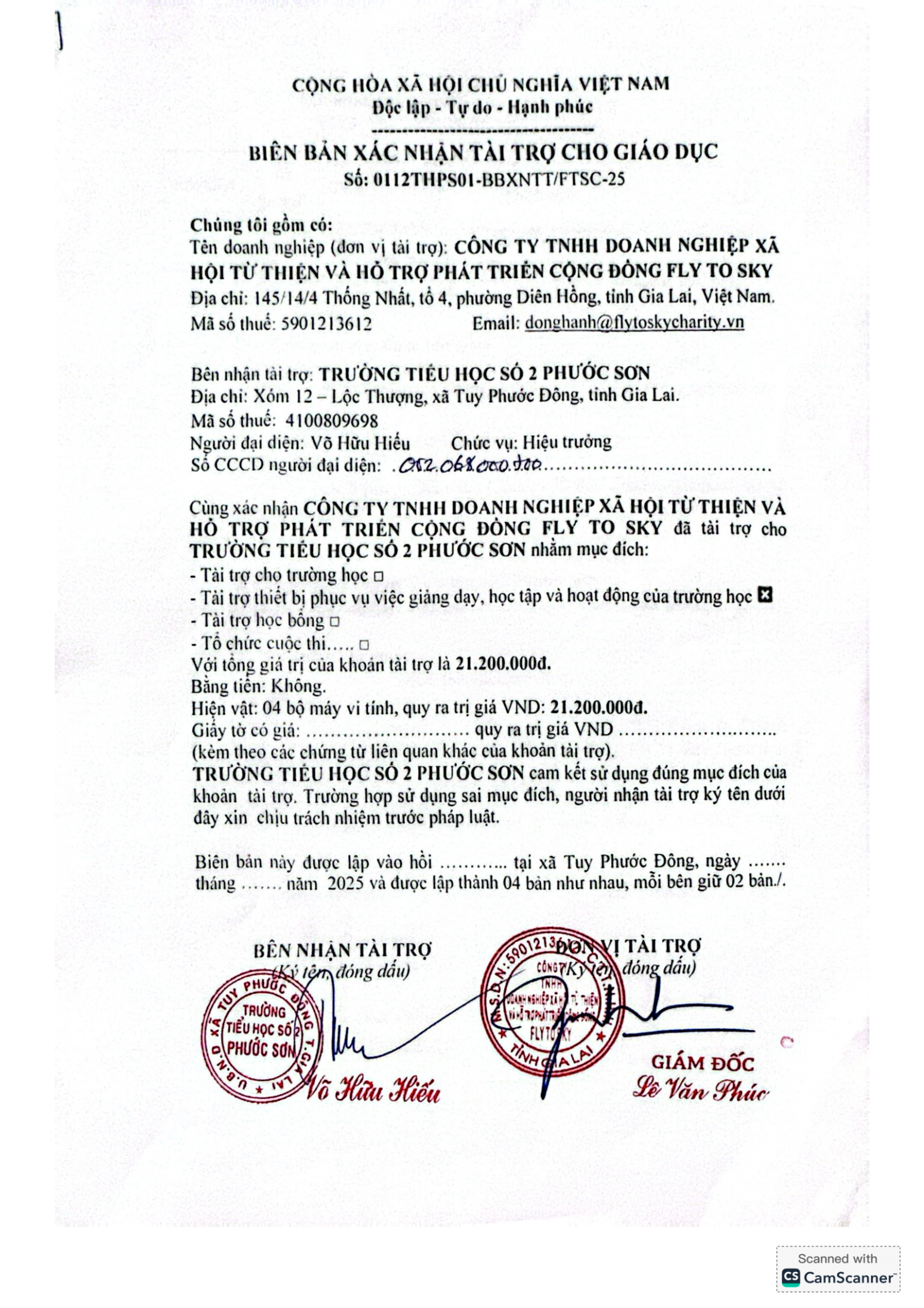 Ngày 03/12/2025, Công ty TNHH Doanh nghiệp xã hội từ thiện và hỗ trợ phát triển cộng đồng Fly To Sky, Nhóm từ thiện Fly To Sky (Trực thuộc Trung tâm Tình nguyện Quốc gia) phối hợp cùng Chi đoàn Báo và phát thanh, truyền hình Gia Lai tổ chức chương trình “Tiếp sức đến trường” tại Trường Tiểu học số 2 Phước Sơn (xã Tuy Phước Đông, tỉnh Gia Lai).