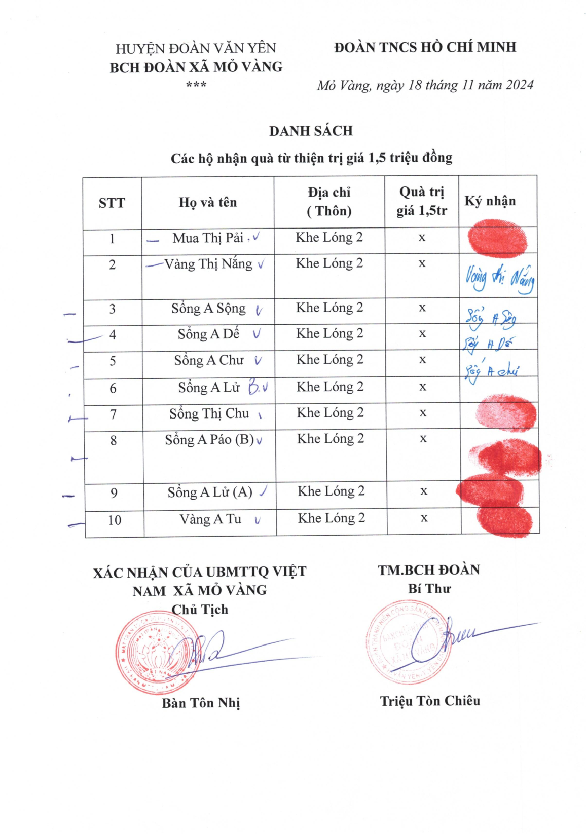Tổng hợp trao tặng từ thiện xã Mỏ Vàng