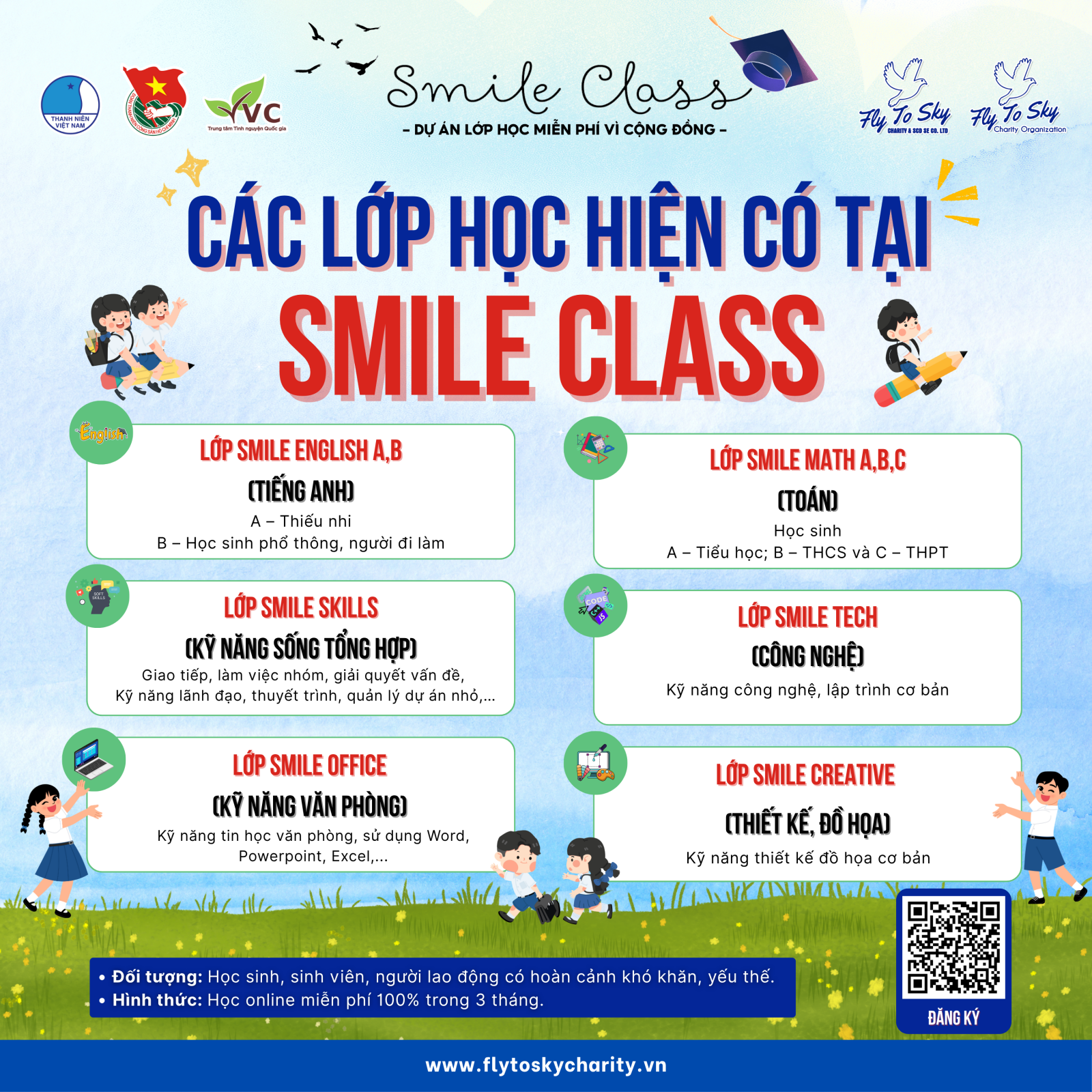Vậy còn chần chờ gì nữa? Hãy đến với Smile Class, nơi tri thức, kỹ năng và niềm vui học tập được sẻ chia!!!