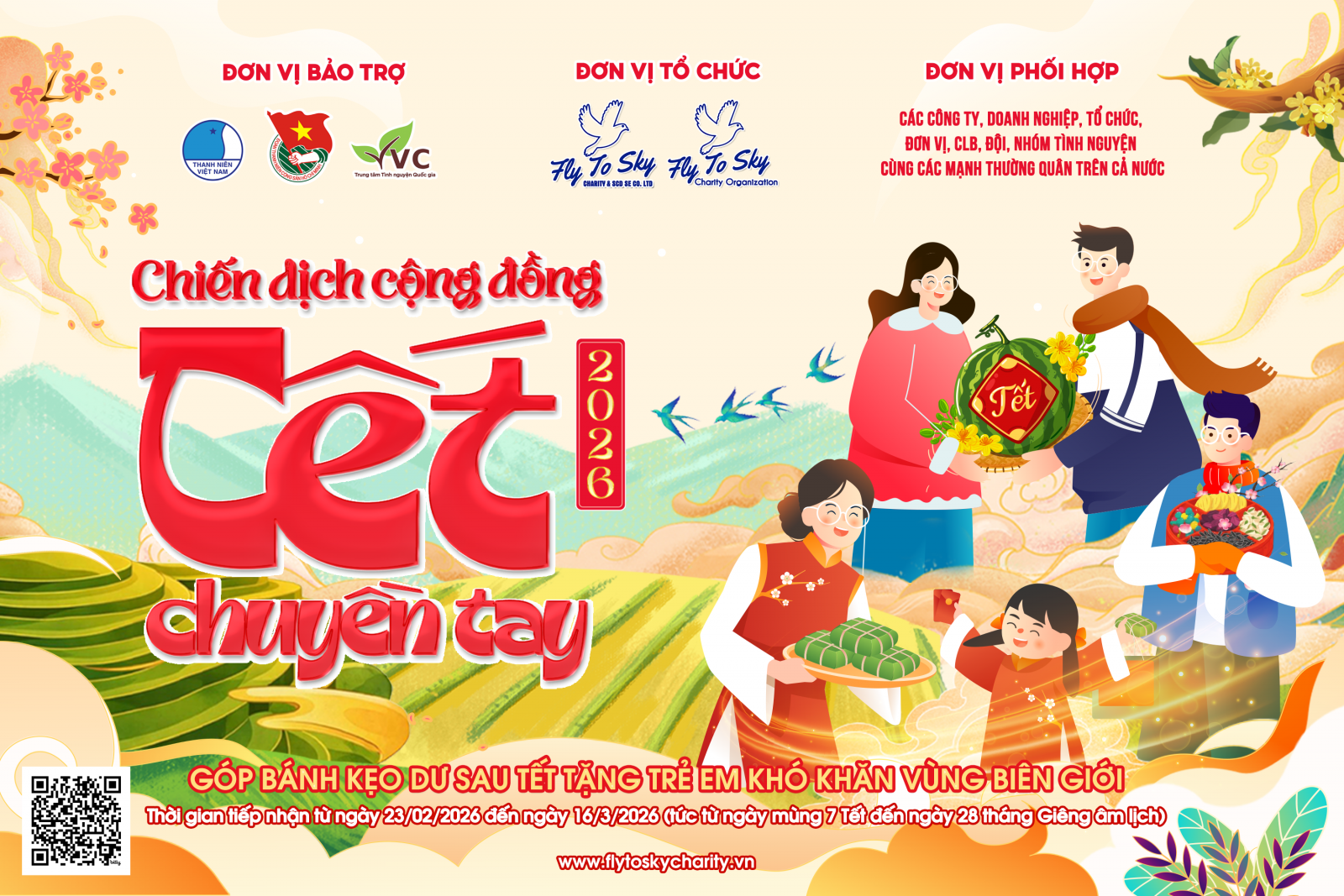 Với mong muốn chia sẻ những phần bánh, kẹo, mứt, hạt ấy, “chuyền tay” không khí và niềm vui của những ngày Tết vừa qua đến với trẻ em vùng cao, trẻ em có hoàn cảnh khó khăn tại khu vực biên giới, đồng thời góp phần hạn chế lãng phí và giảm thiểu thực phẩm thừa sau Tết, Công ty TNHH Doanh nghiệp xã hội từ thiện và hỗ trợ phát triển cộng đồng Fly To Sky, Nhóm từ thiện Fly To Sky, cùng sự hỗ trợ và đồng hành của các cơ quan, ban ngành, các câu lạc bộ, đội, nhóm tình nguyện, các tổ chức và cá nhân trên khắp mọi miền đất nước tiếp tục phát động Chiến dịch cộng đồng “Tết chuyền tay” năm 2026 – Góp bánh kẹo dư sau Tết tặng trẻ em vùng biên giới.