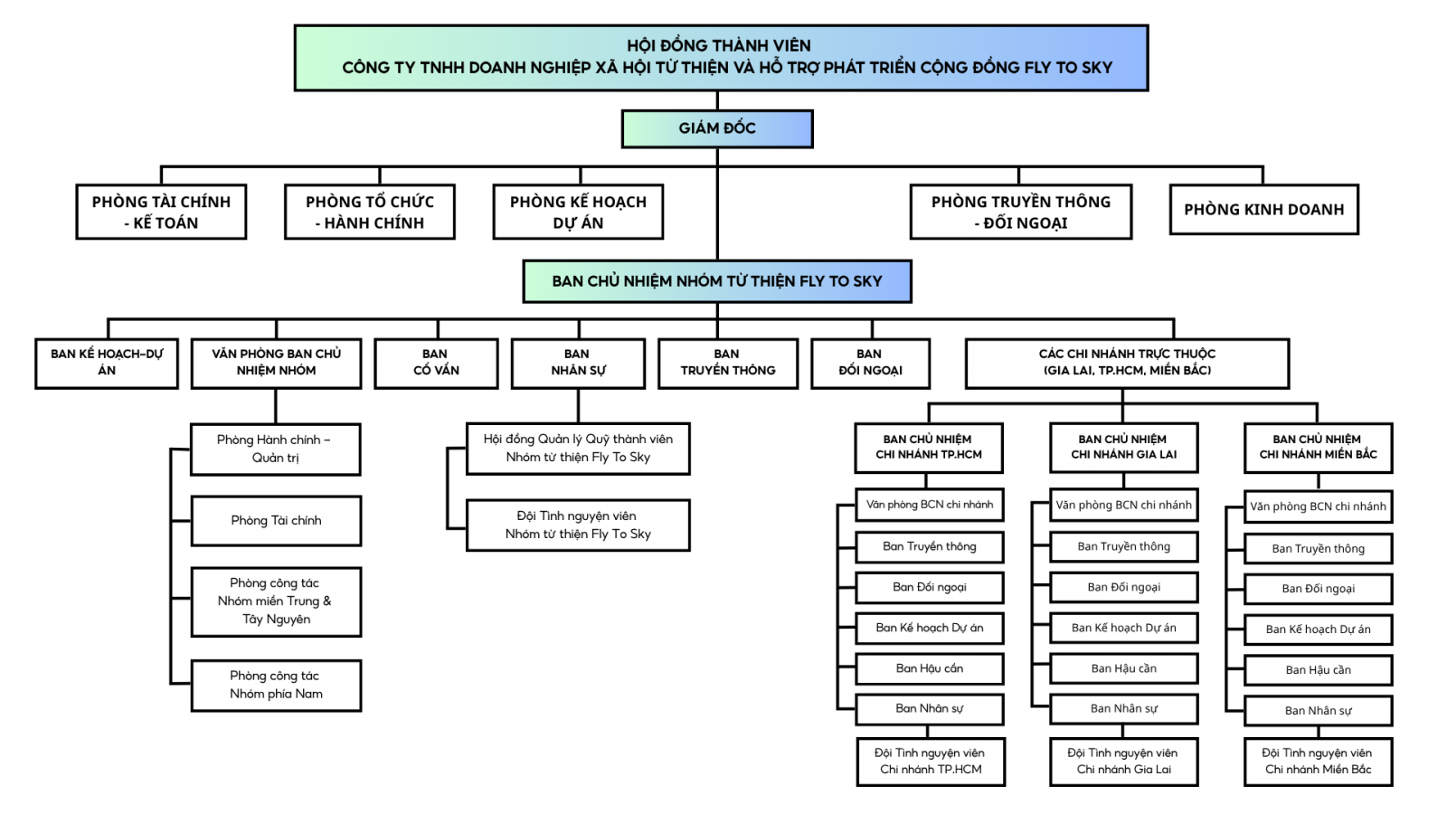 Nhóm từ thiện Fly To Sky (Fly To Sky Charity Organization) sẽ tiếp tục hoạt động là tổ chức tình nguyện trực thuộc Doanh nghiệp xã hội hội từ thiện và hỗ trợ phát triển cộng đồng Fly To Sky với mong muốn là môi trường trao quyền, tạo điều kiện thuận lợi cho các bạn trẻ trẻ, thậm chí là rất trẻ được tham gia, triển khai, tổ chức các hoạt thiện nguyện, vì cộng đồng hàng đầu cả nước.