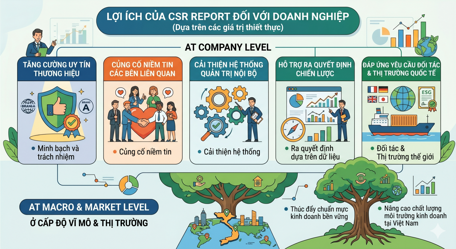 Việc xây dựng và công bố CSR Report mang lại nhiều giá trị thiết thực: