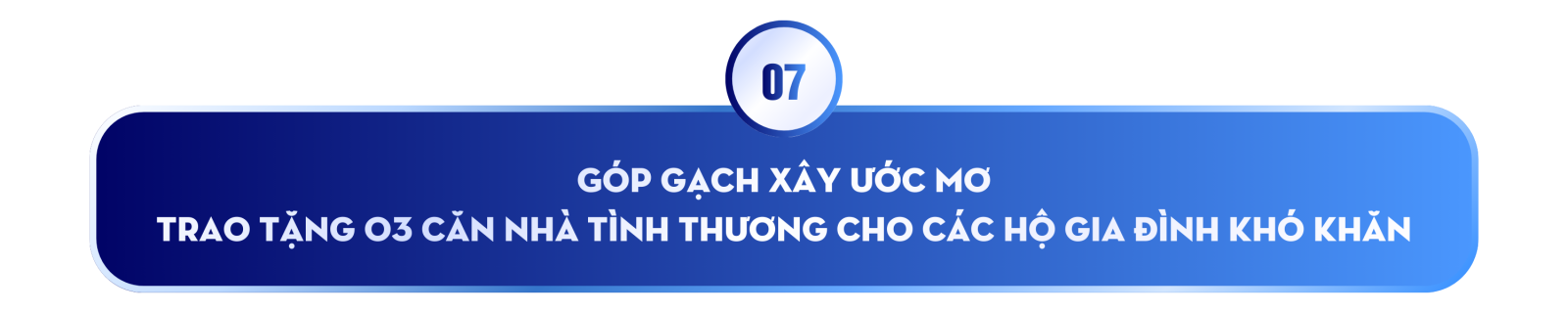 Năm 2025, Dự án “Góp gạch xây ước mơ” do Fly To Sky triển khai tiếp tục hiện thực hóa cam kết an sinh cơ bản bằng việc đồng hành, hỗ trợ xây dựng 03 căn nhà cho các hộ gia đình có hoàn cảnh đặc biệt khó khăn. Những mái ấm mới này được thực hiện thông qua sự phối hợp của Fly To Sky với các nhà tài trợ, doanh nghiệp và chính quyền địa phương, thể hiện tinh thần “đi cùng người dân” — từ khởi công đến khánh thành — nhằm mang lại chỗ ở an toàn, bền vững và tạo nền tảng để các gia đình ổn định cuộc sống.