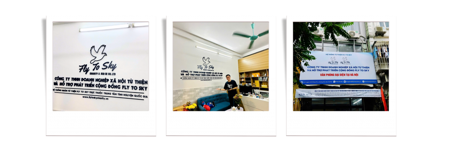 Bao gồm Công ty TNHH Doanh nghiệp xã hội từ thiện và hỗ trợ phát triển cộng đồng Fly To Sky & Nhóm từ thiện Fly To Sky