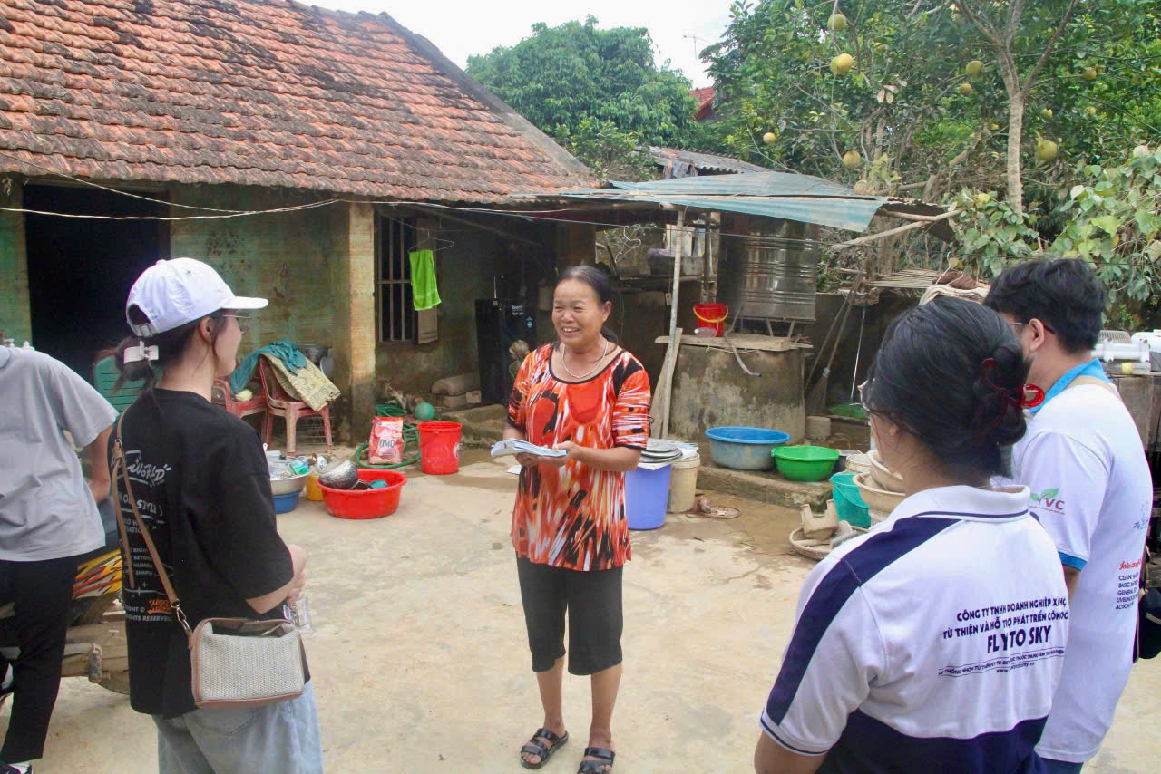 Hình: Đại diện Fly To Sky đến thăm và trao tặng 150 suất quà đến các hộ gia đình bị ảnh hưởng tại xã Vân Nham (tỉnh Lạng Sơn)