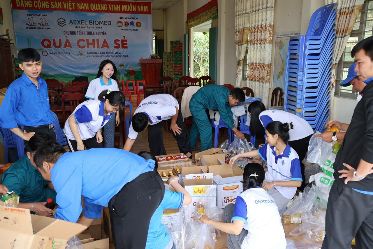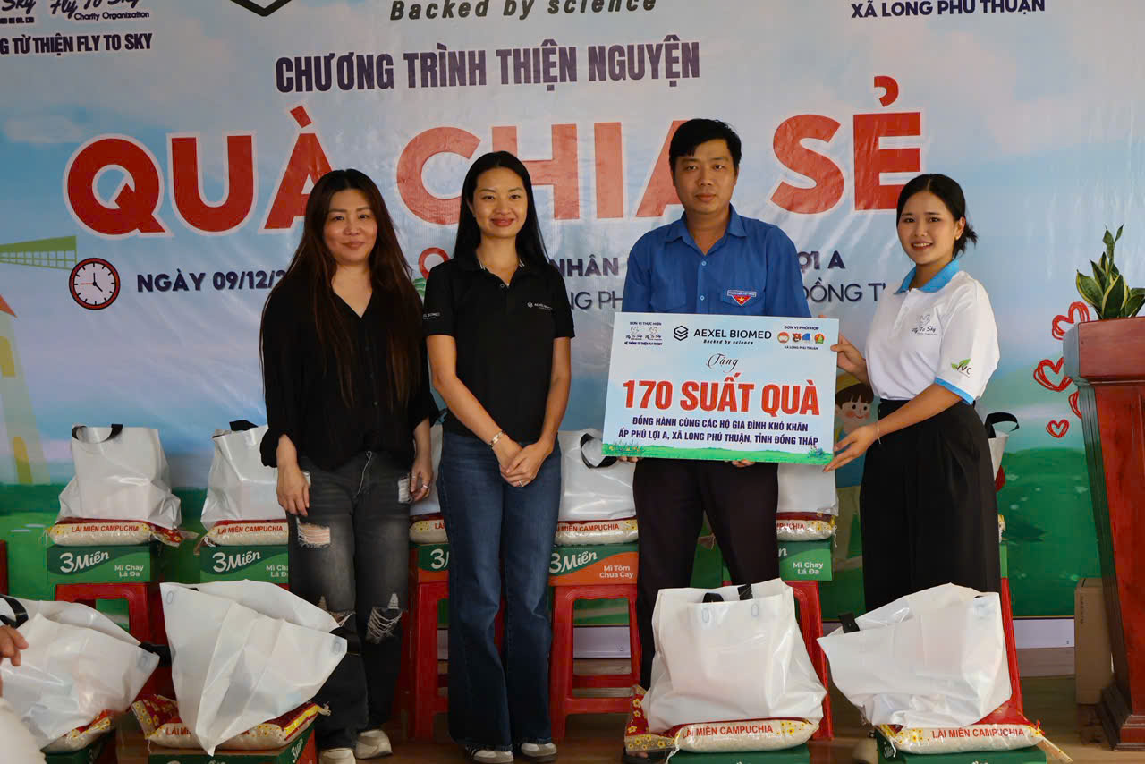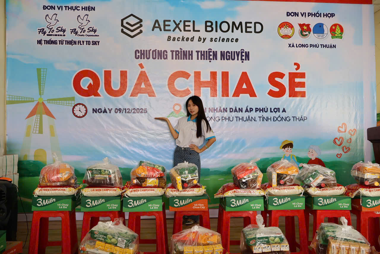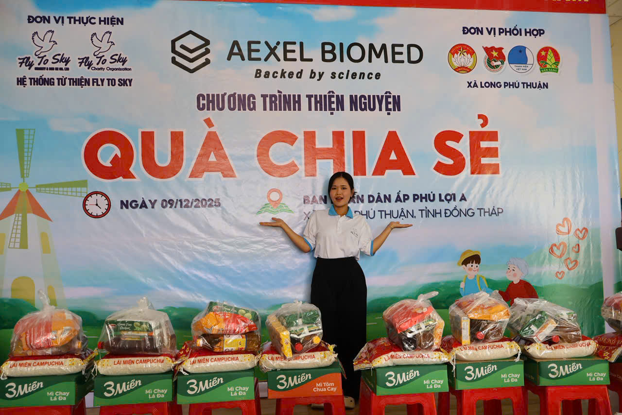 Chiều ngày 09/12/2025, Công ty TNHH Doanh nghiệp xã hội từ thiện và hỗ trợ phát triển cộng đồng Fly To Sky, Nhóm từ thiện Fly To Sky phối hợp cùng Aexel Biomed đã tổ chức Chương trình “Quà chia sẻ” tại xã Long Phú Thuận, tỉnh Đồng Tháp.