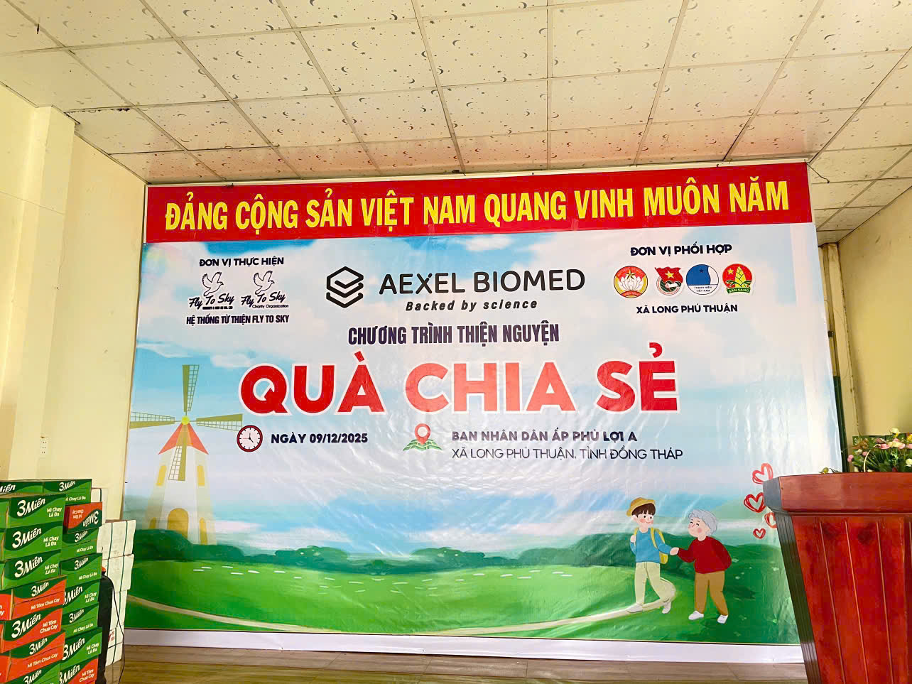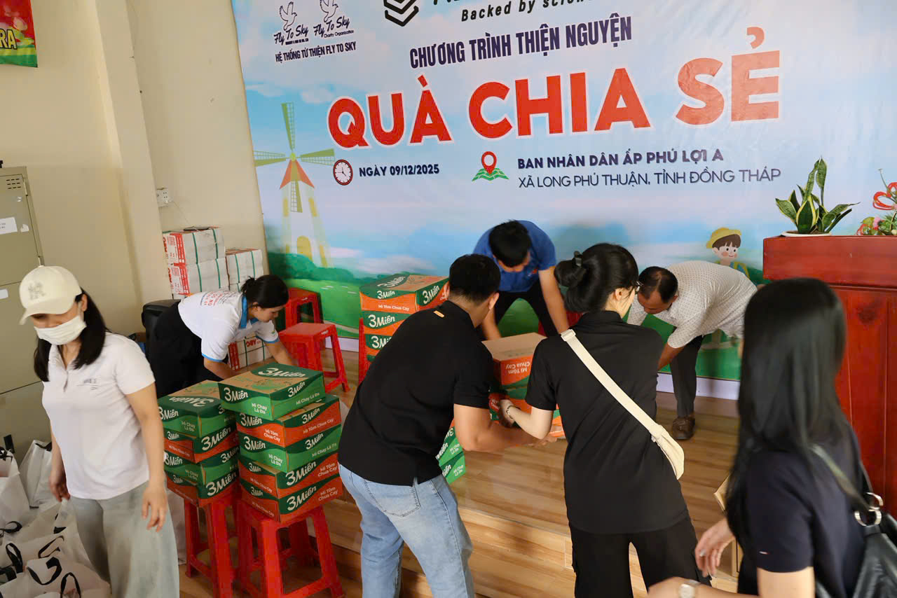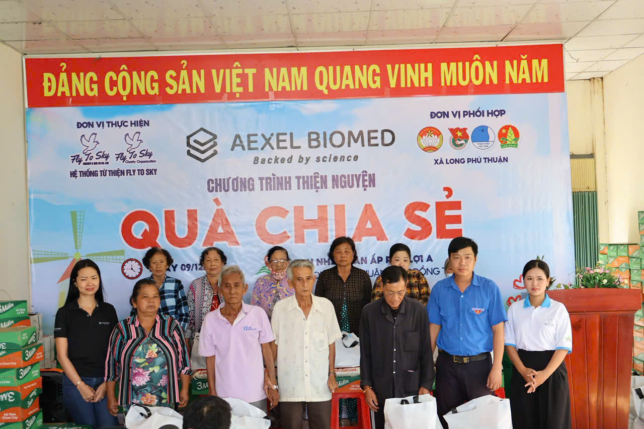 Chiều ngày 09/12/2025, Công ty TNHH Doanh nghiệp xã hội từ thiện và hỗ trợ phát triển cộng đồng Fly To Sky, Nhóm từ thiện Fly To Sky phối hợp cùng Aexel Biomed đã tổ chức Chương trình “Quà chia sẻ” tại xã Long Phú Thuận, tỉnh Đồng Tháp.