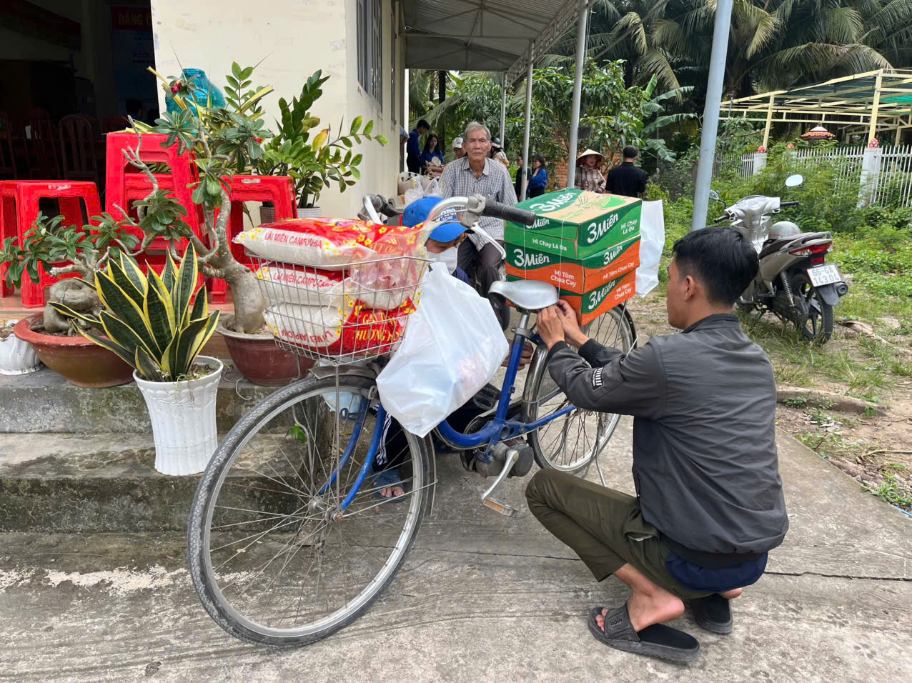 Tại Trụ sở Ban Nhân dân ấp, đoàn đã trao 170 suất quà đến các hộ gia đình khó khăn tại Ấp Phú Lợi A. Mỗi phần quà gồm 01 thùng mì gói, 05kg gạo, sữa, dầu ăn, nước mắm, bánh kẹo, kem đánh răng và đường, được chuẩn bị chu đáo nhằm hỗ trợ bà con phần nào trong đời sống hằng ngày.