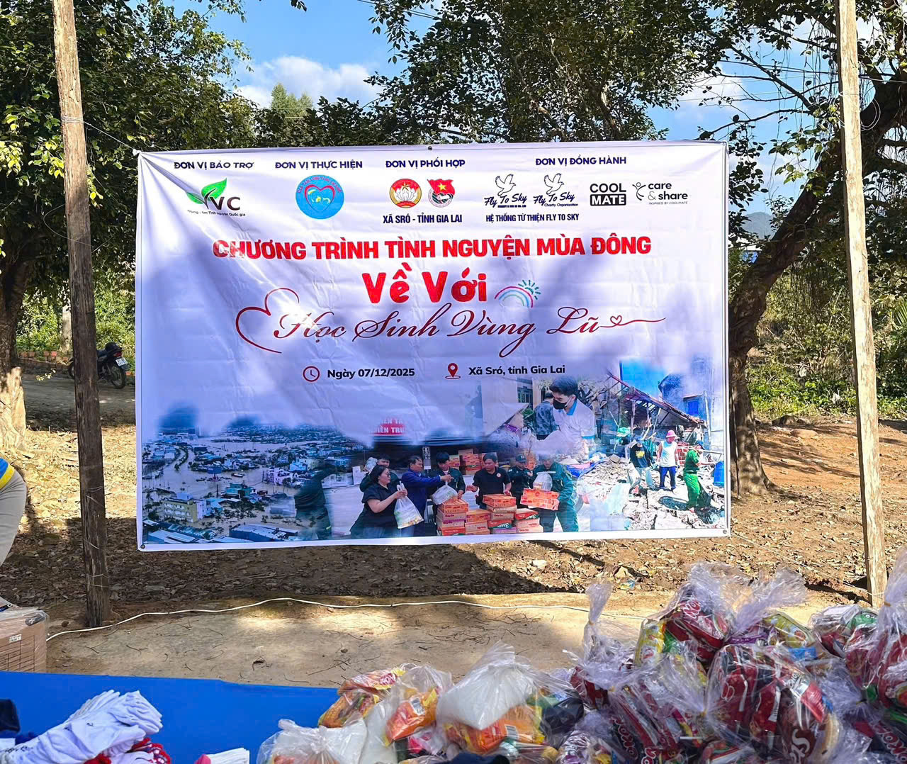 Sáng ngày 7/12/2025, Công ty TNHH Doanh nghiệp xã hội từ thiện và hỗ trợ phát triển cộng đồng Fly To Sky, Nhóm từ thiện Fly To Sky (trực thuộc Trung tâm Tình nguyện Quốc gia - Trung ương Đoàn TNCS Hồ Chí Minh), Dự án Care & Share (Coolmate) đồng hành cùng CLB Tấm lòng vàng An Khê tổ chức Chương trình Tình nguyện Mùa Đông - Về với học sinh vùng lũ.
