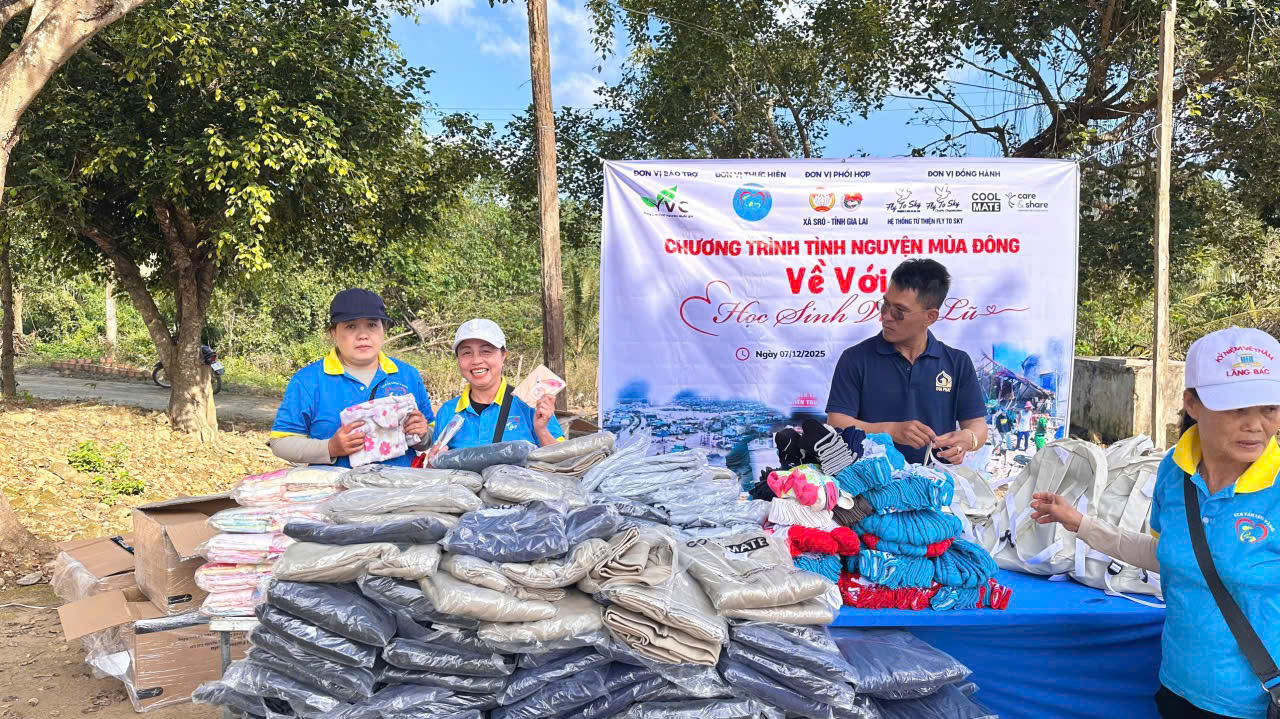 Trong khuôn khổ chương trình, Coolmate đã gửi tặng 500 áo khoác và 500 đôi tất nhằm hỗ trợ học sinh và bà con giữ ấm trong mùa lạnh. Nhân dịp này, CLB Tấm Lòng Vàng An Khê cũng trao tặng quà cho 200 học sinh và 200 hộ dân tại 3 làng K’ươi, Quel và Húp – những địa bàn chịu thiệt hại nặng nề nhất của huyện Kông Chro cũ.