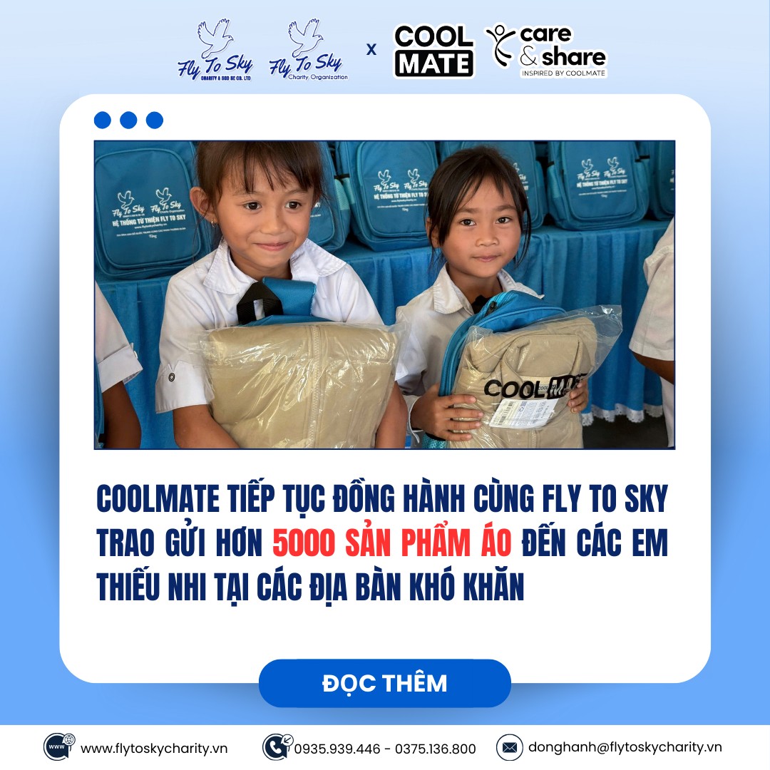 - Các đơn vị, cá nhân mong muốn đồng hành, hợp tác, tài trợ hoặc tư vấn thực hiện các Dự án CSR, ESG theo yêu cầu xin liên hệ số điện thoại 0375.136.800 hoặc 0935.939.446 hoặc email lienhe@flytoskycharity.vn – donghanh@flytoskycharity.vn