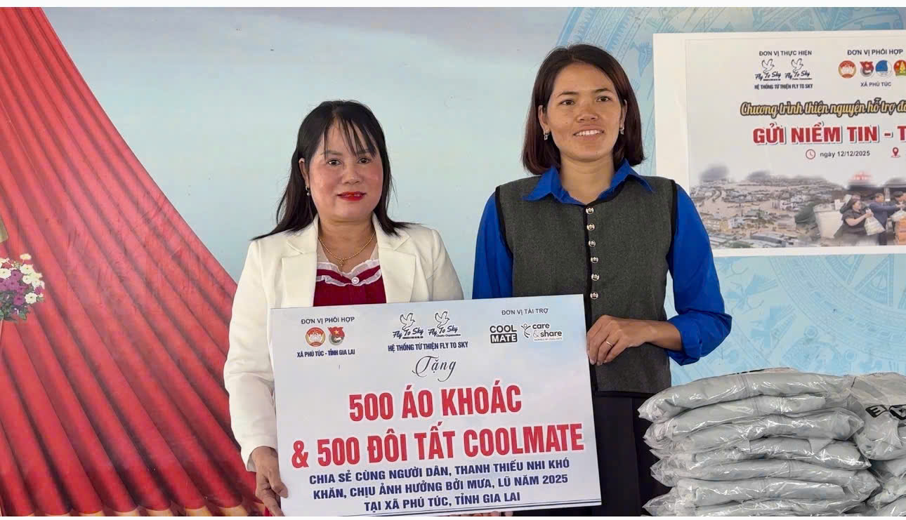 Ngày 12/12/2025, Công ty TNHH Doanh nghiệp xã hội từ thiện và hỗ trợ phát triển cộng đồng Fly To Sky, Nhóm từ thiện Fly To Sky (Trực thuộc Trung tâm Tình nguyện Quốc gia – Trung ương Đoàn TNCS Hồ Chí Minh), Dự án Care & Share (Coolmate) tổ chức Chương trình Tình nguyện Gửi niềm tin – Trao hy vọng tại xã Phú Túc, tỉnh Gia Lai.