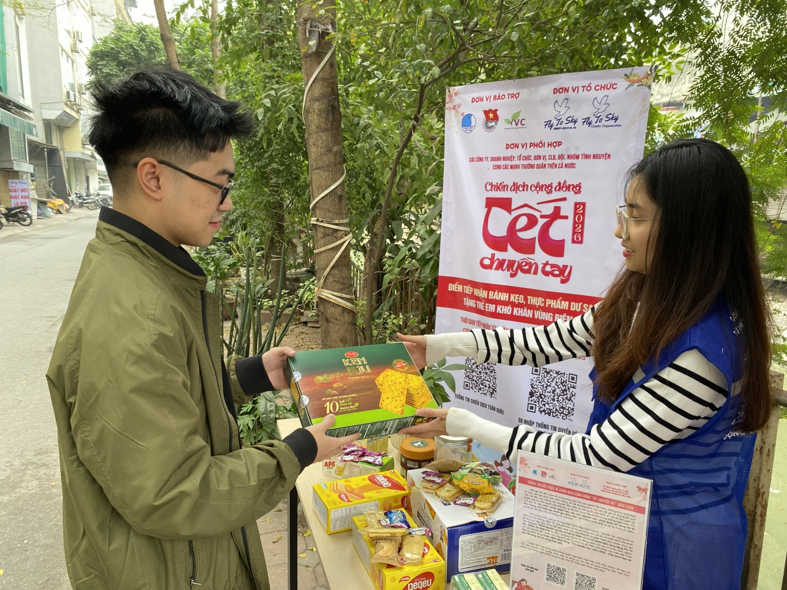 NỘI DUNG VẬN ĐỘNG: Chiến dịch kêu gọi quyên góp bánh kẹo, mứt, hạt, đồ hộp, thực phẩm đóng gói, nước đóng chai, sữa các loại còn nguyên chất lượng, chưa sử dụng, còn hạn sử dụng, không có dấu hiệu hư hỏng, mốc, chảy và không nhận thực phẩm tươi sống.