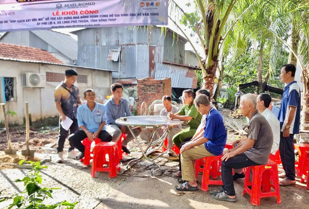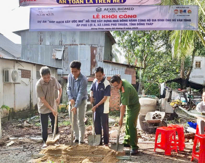 Sáng ngày 08/11/2025, Aexel Biomed đồng hành cùng Công ty TNHH Doanh nghiệp xã hội từ thiện và hỗ trợ phát triển cộng đồng Fly To Sky, Nhóm từ thiện Fly To Sky (Trực thuộc Trung tâm Tình nguyện Quốc gia – Trung ương Đoàn TNCS Hồ Chí Minh) tổ chức lễ khởi công xây dựng dự án “Góp gạch xây ước mơ” cho gia đình chú Hồ Văn Tùng – một hộ nghèo có hoàn cảnh đặc biệt khó khăn tại Ấp Phú Lợi A, xã Long Phú Thuận, tỉnh Đồng Tháp.