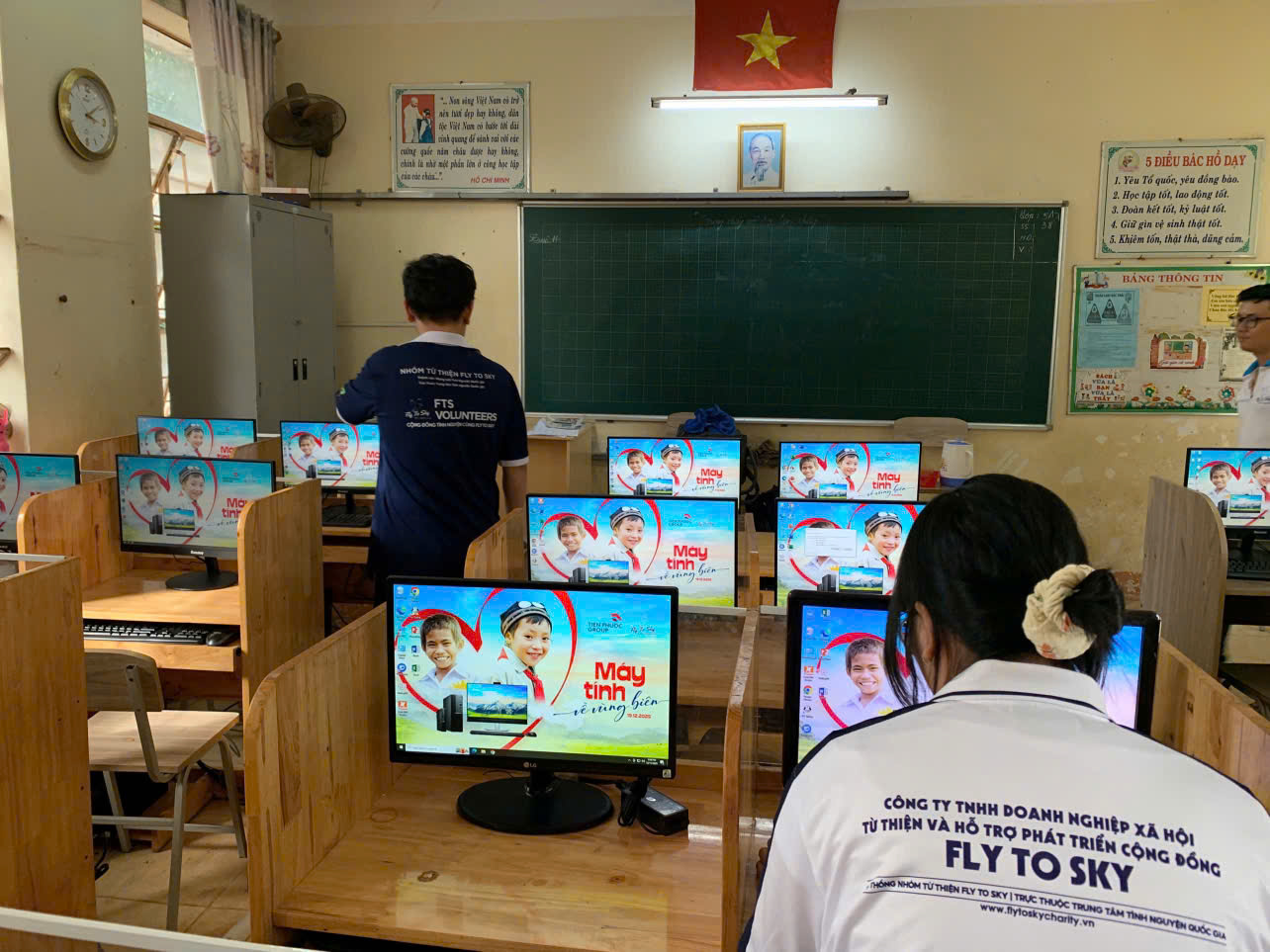 Theo đó, 30 bộ máy tính PC được trang bị nhằm bổ sung cho phòng tin học của trường, giúp mỗi học sinh có cơ hội thực hành trên một máy. Đồng thời, 2 màn hình TV 65 inch cũng được trao tặng để hỗ trợ giáo viên giảng dạy các môn học khác, tăng tính trực quan, sinh động trong mỗi tiết học.