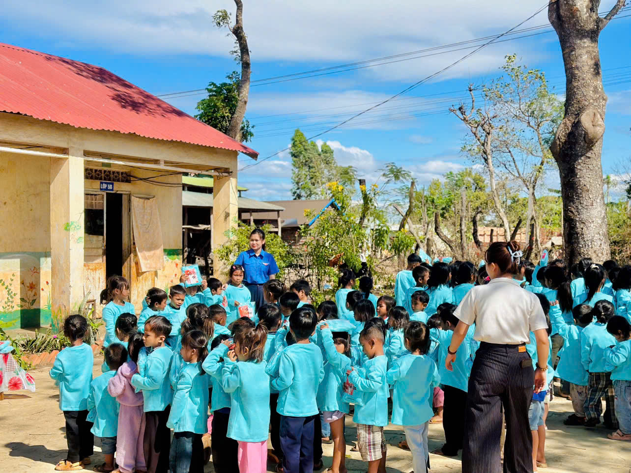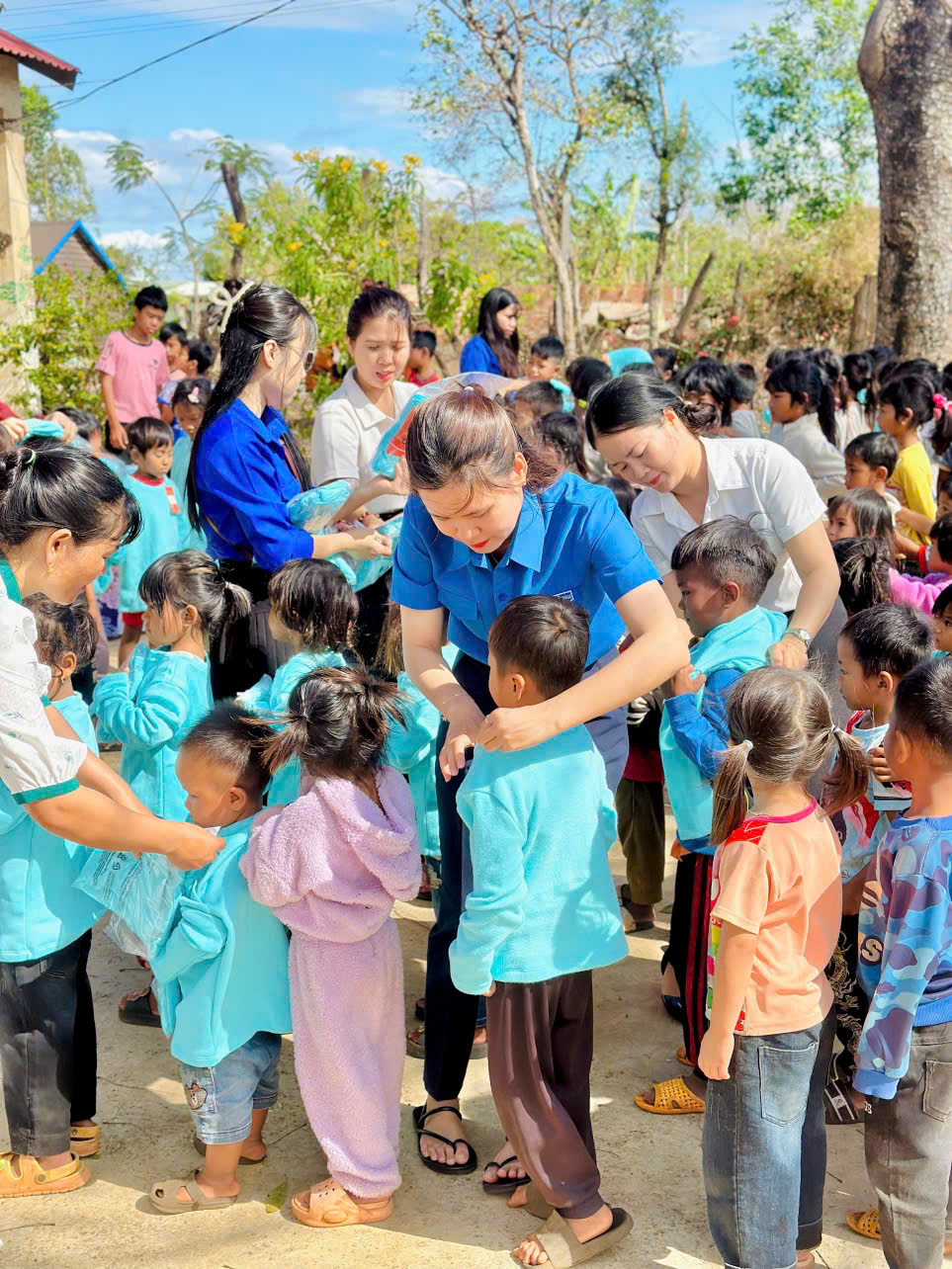 Những chiếc áo được trao tận tay các em học sinh như một món quà nhỏ nhưng ấm áp, giúp các em thêm tự tin khi đến lớp và cảm nhận được sự quan tâm từ cộng đồng.