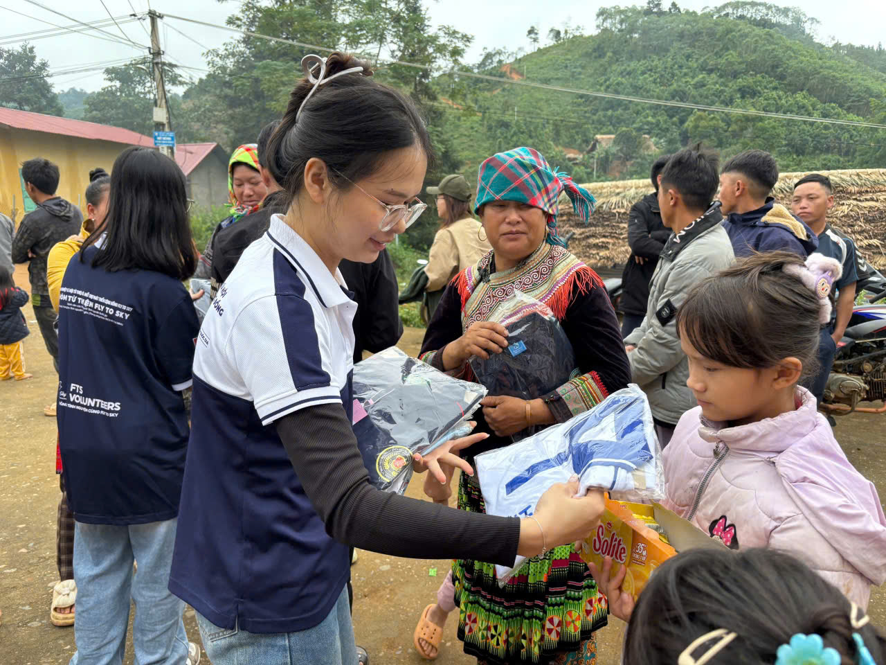 Nhân dịp này, Công ty Diamondgene cũng đồng hành cùng Fly To Sky trao hàng ngàn sản phẩm áo thun, áo polo các loại cho các hộ gia đình. Cùng ngày, Đoàn cũng thăm và trao tặng 02 máy lọc nước cho Trường Mầm non Châu Quế Thượng.