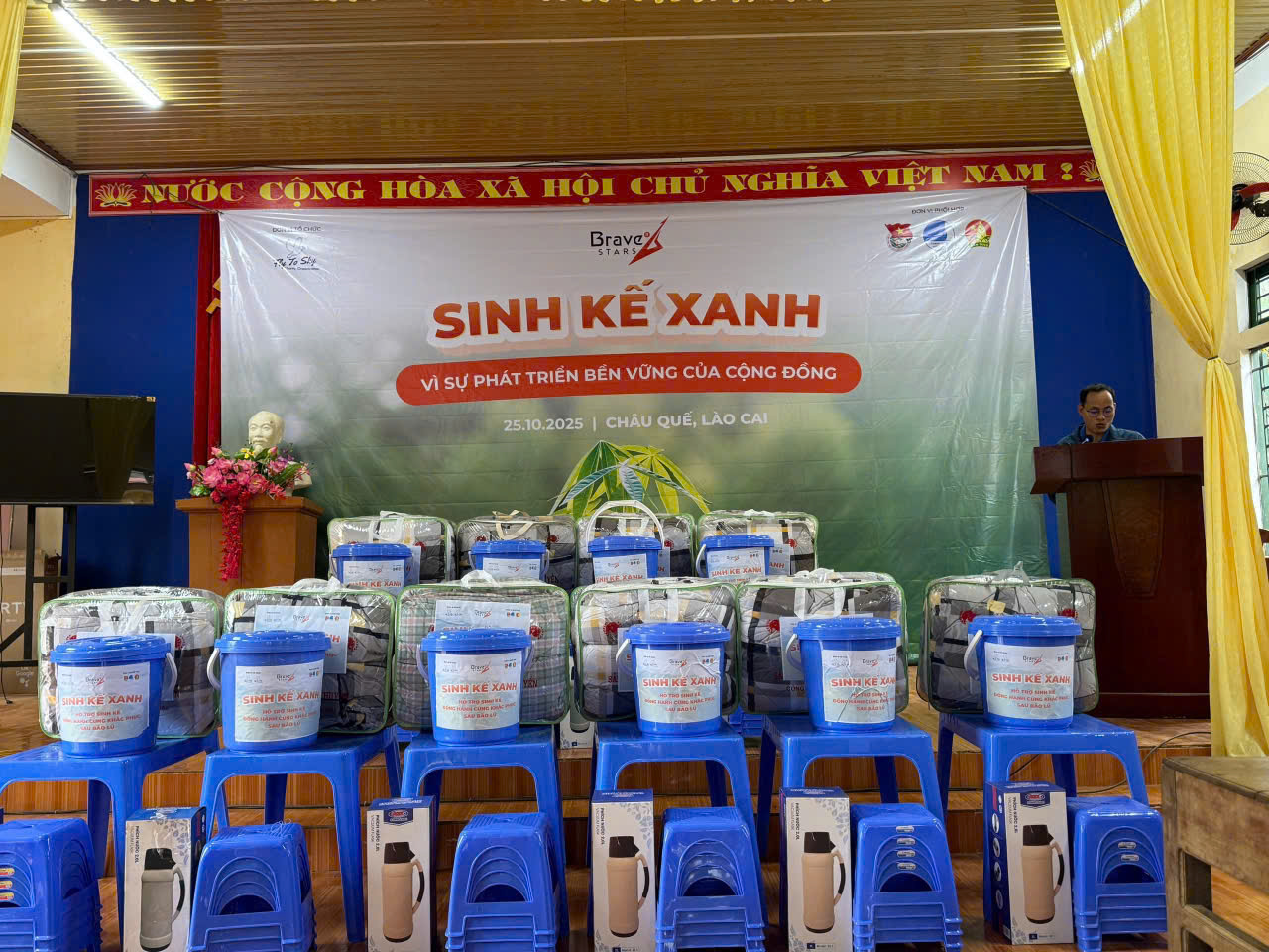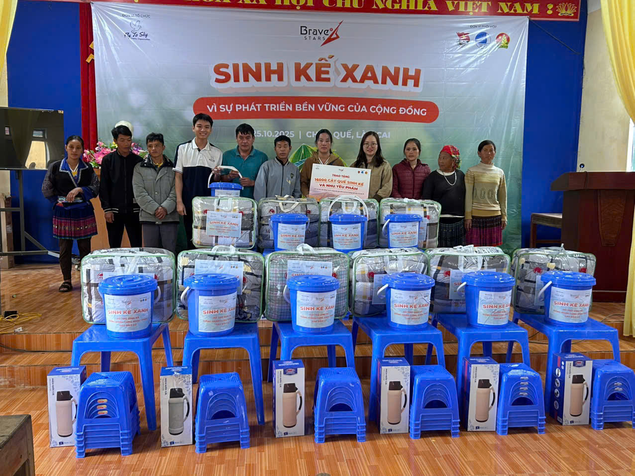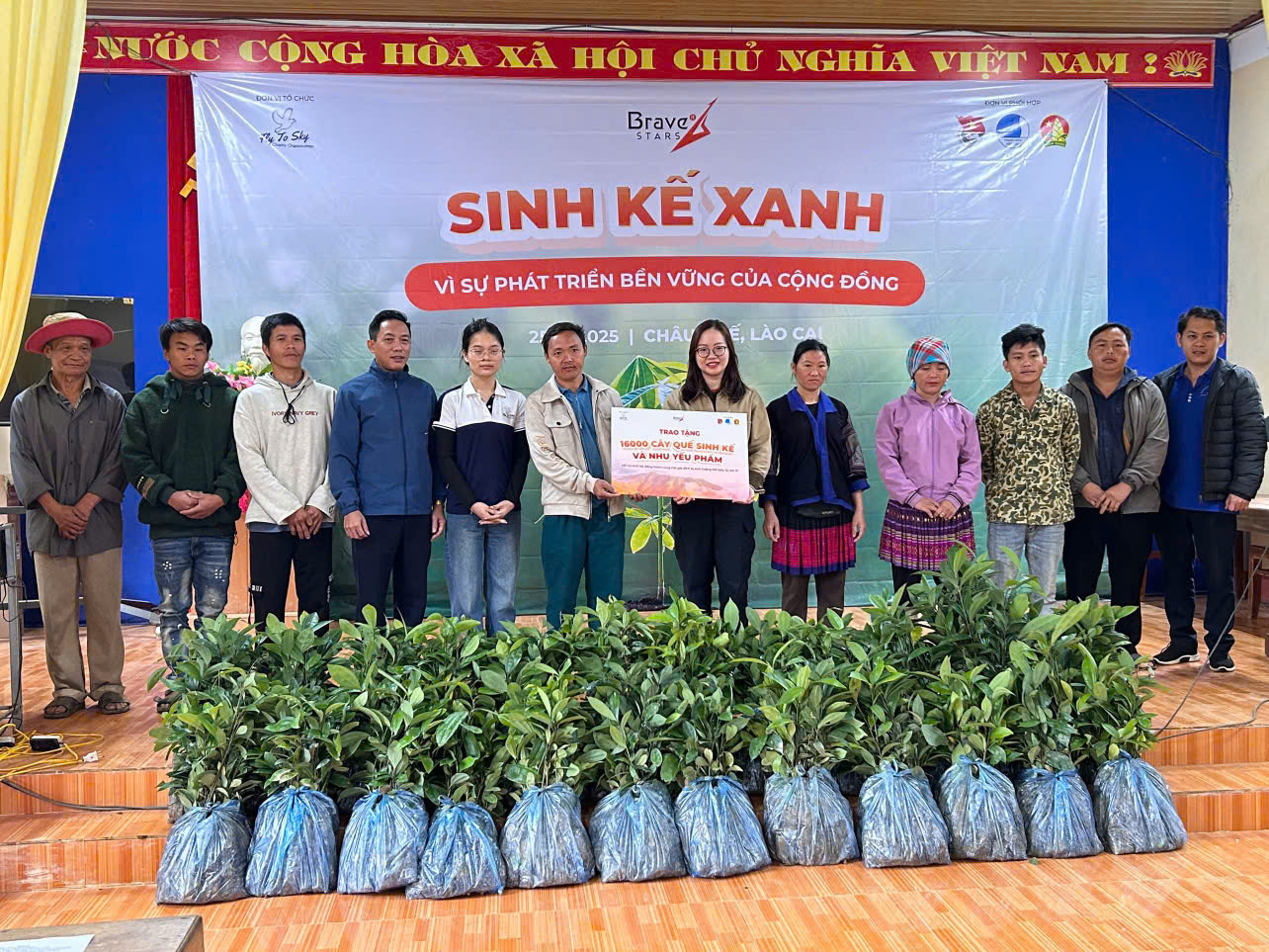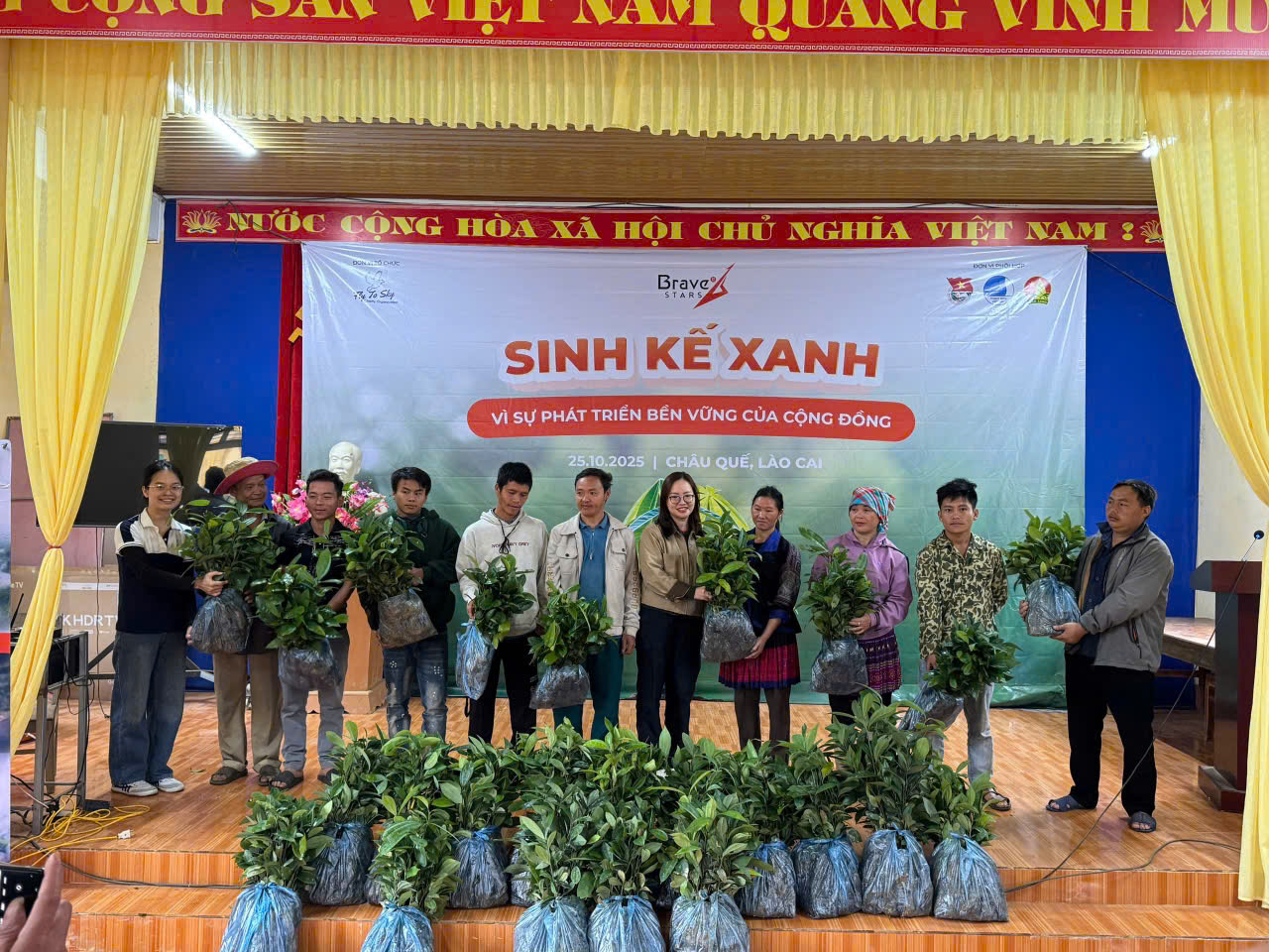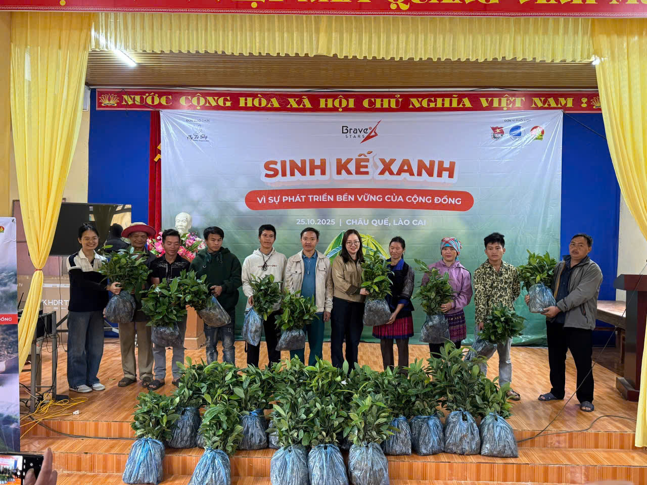 Ngày 25/10/2025, tại nhà văn hóa thôn Ao Ếch, xã Châu Quế, tỉnh Lào Cai, Công ty TNHH Doanh nghiệp xã hội từ thiện và hỗ trợ phát triển cộng đồng Fly To Sky, Nhóm từ thiện Fly To Sky (Trực thuộc Trung tâm Tình nguyện Quốc gia – Trung ương Đoàn TNCS Hồ Chí Minh), Công ty TNHH Ngôi sao dũng cảm phối hợp cùng Đoàn xã Châu Quế tổ chức Chương trình “Sinh kế xanh”.