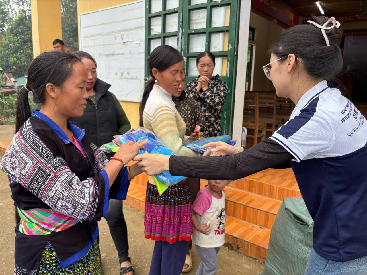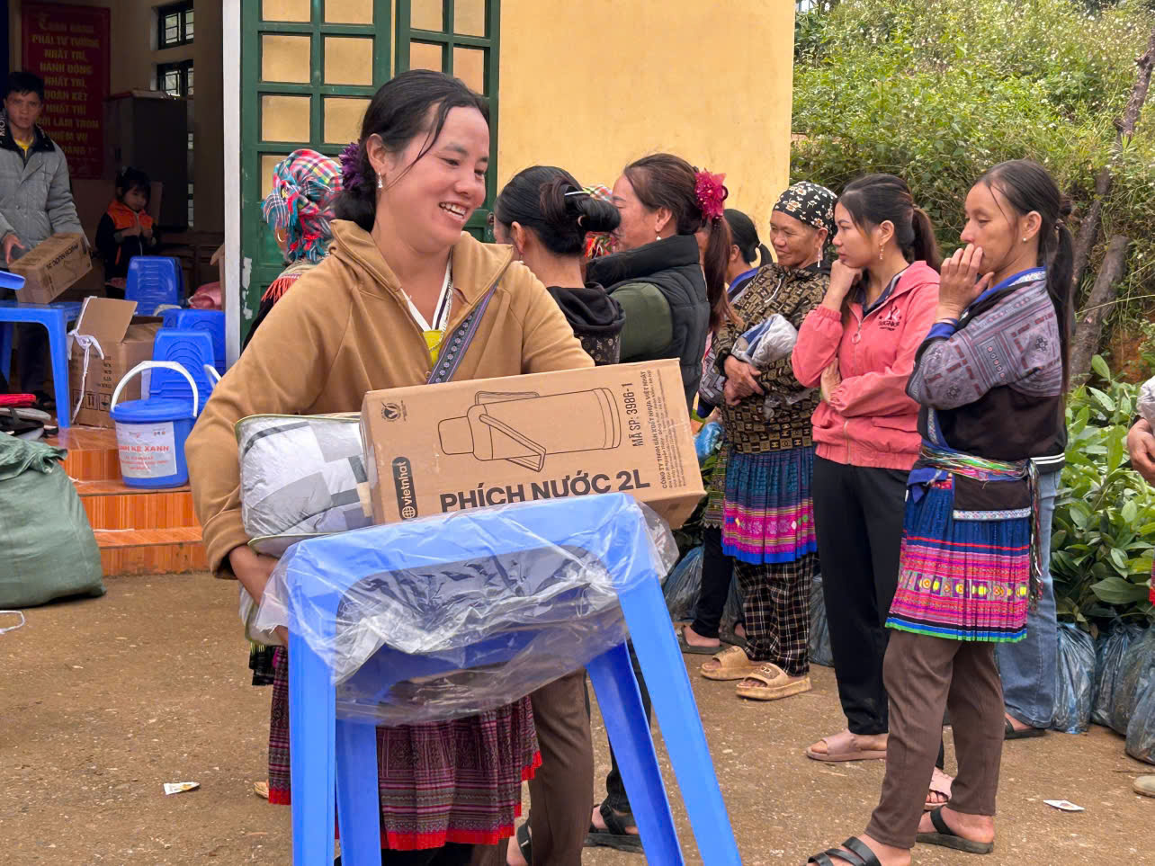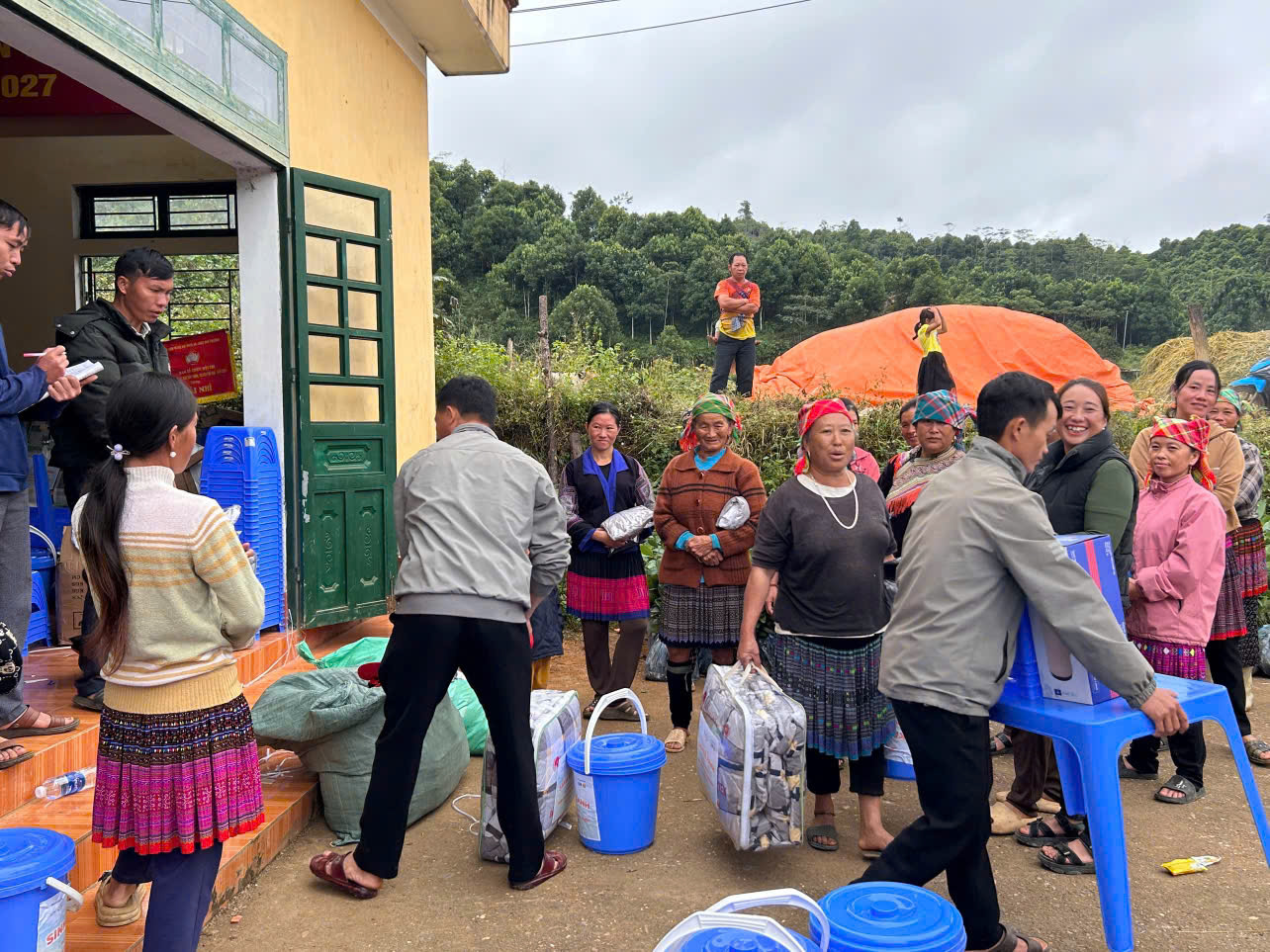 Bên cạnh đó, chương trình cũng mang đến 30 suất quà an sinh dành tặng cho các hộ gia đình có hoàn cảnh đặc biệt khó khăn trên địa bàn xã. Mỗi phần quà gồm bàn ghế nhựa, chén bát, xô nhựa, phích nước, đồ tẩy rửa, chăn ấm – những vật dụng thiết yếu giúp bà con cải thiện sinh hoạt hằng ngày, ổn định cuộc sống sau thiên tai và những ngày mưu sinh vất vả.