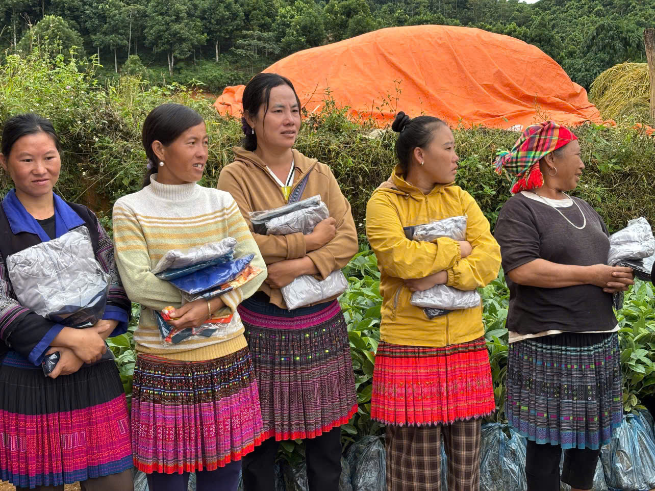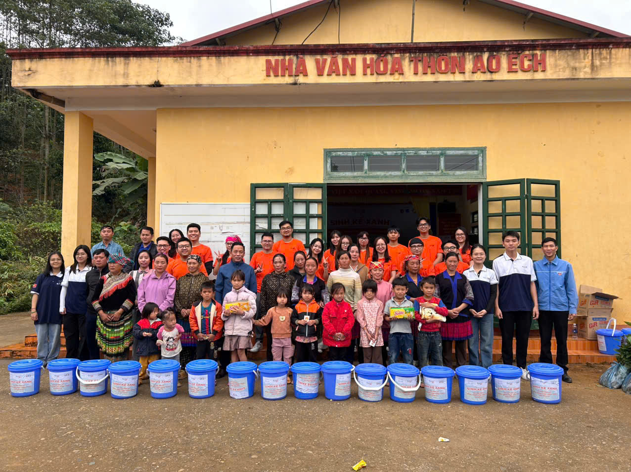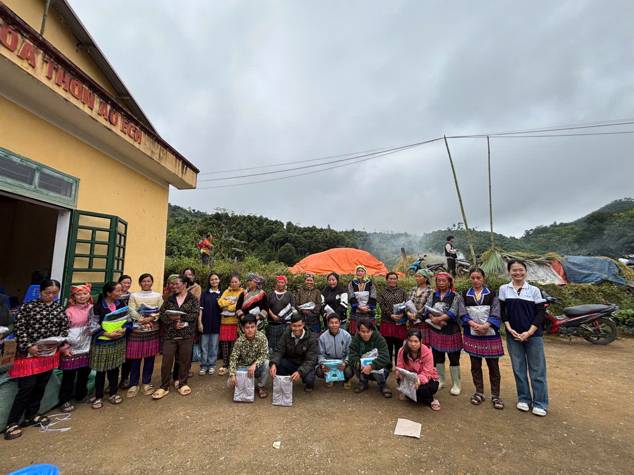 Bên cạnh đó, chương trình cũng mang đến 30 suất quà an sinh dành tặng cho các hộ gia đình có hoàn cảnh đặc biệt khó khăn trên địa bàn xã. Mỗi phần quà gồm bàn ghế nhựa, chén bát, xô nhựa, phích nước, đồ tẩy rửa, chăn ấm – những vật dụng thiết yếu giúp bà con cải thiện sinh hoạt hằng ngày, ổn định cuộc sống sau thiên tai và những ngày mưu sinh vất vả.