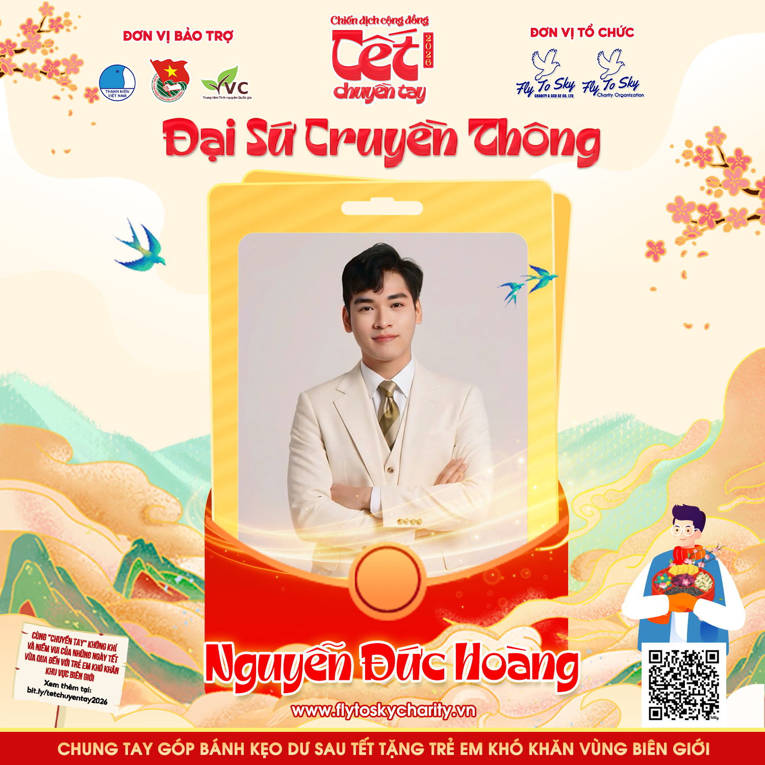 Đồng hành cùng “Tết chuyền tay” 2026, Đức Hoàng tin rằng mỗi phần quà bánh kẹo, thực phẩm được sẻ chia là một “tín hiệu” yêu thương gửi đến vùng biên giới. Anh mong muốn dùng chính sự nhiệt huyết và tầm ảnh hưởng của mình để mỗi món quà “chuyền đi” đều mang theo hy vọng và niềm vui trọn vẹn cho các em nhỏ vùng cao. Bạn đã sẵn sàng cùng Đại sứ Nguyễn Đức Hoàng viết tiếp bản nhạc của lòng nhân ái trong mùa xuân này chưa?
